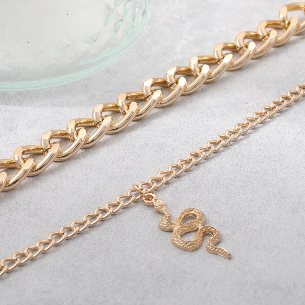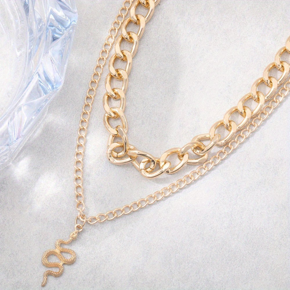 Snake Pendant Necklace Ins Creative Personality Punk Style Thick Chain Double Collarbone Chain Female