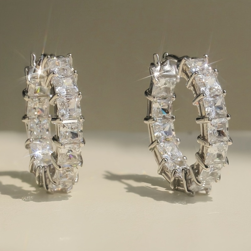 Sparkling Circle Earrings, Copper Jewelry, Square Zirconia Decoration, Fashion Luxury Style, Ladies Party Date Earrings