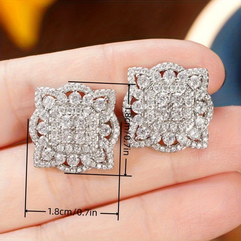 Sparkling Square Earrings, Copper Jewelry, Zircon Set, Fashion Luxury Style, Ladies Wedding Date Earrings