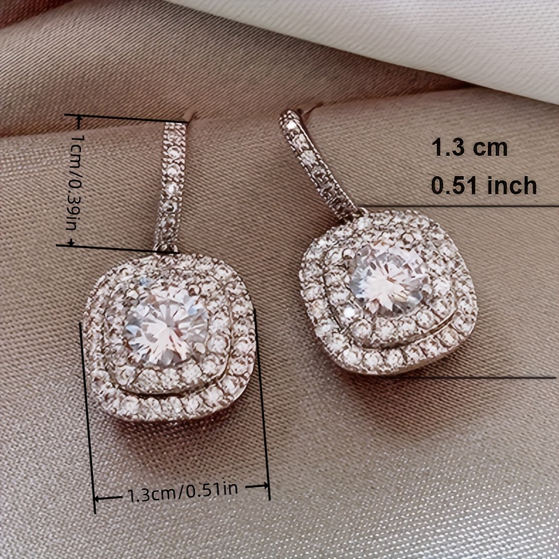 Square zircon pendant earrings, vintage elegance, silver-plated jewelry, wedding banquet accessories.