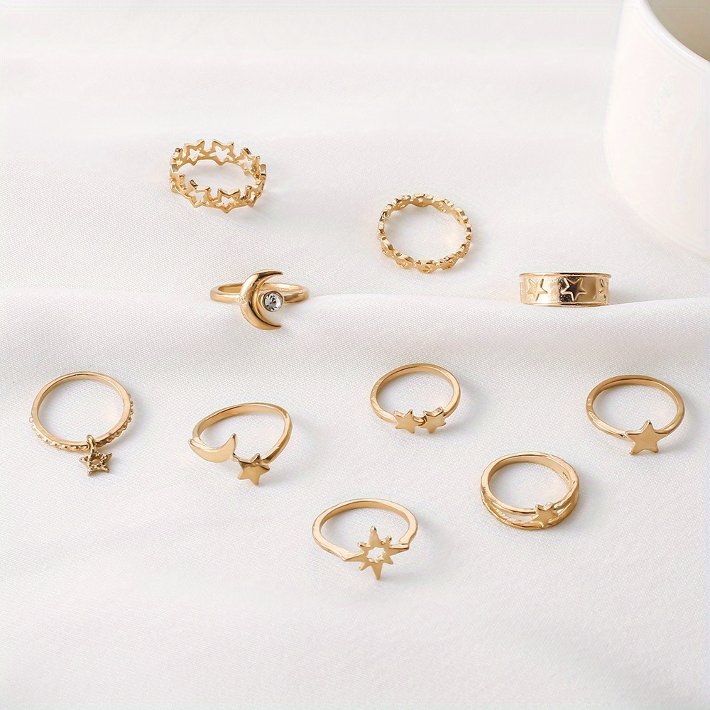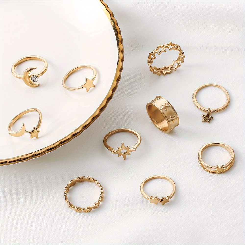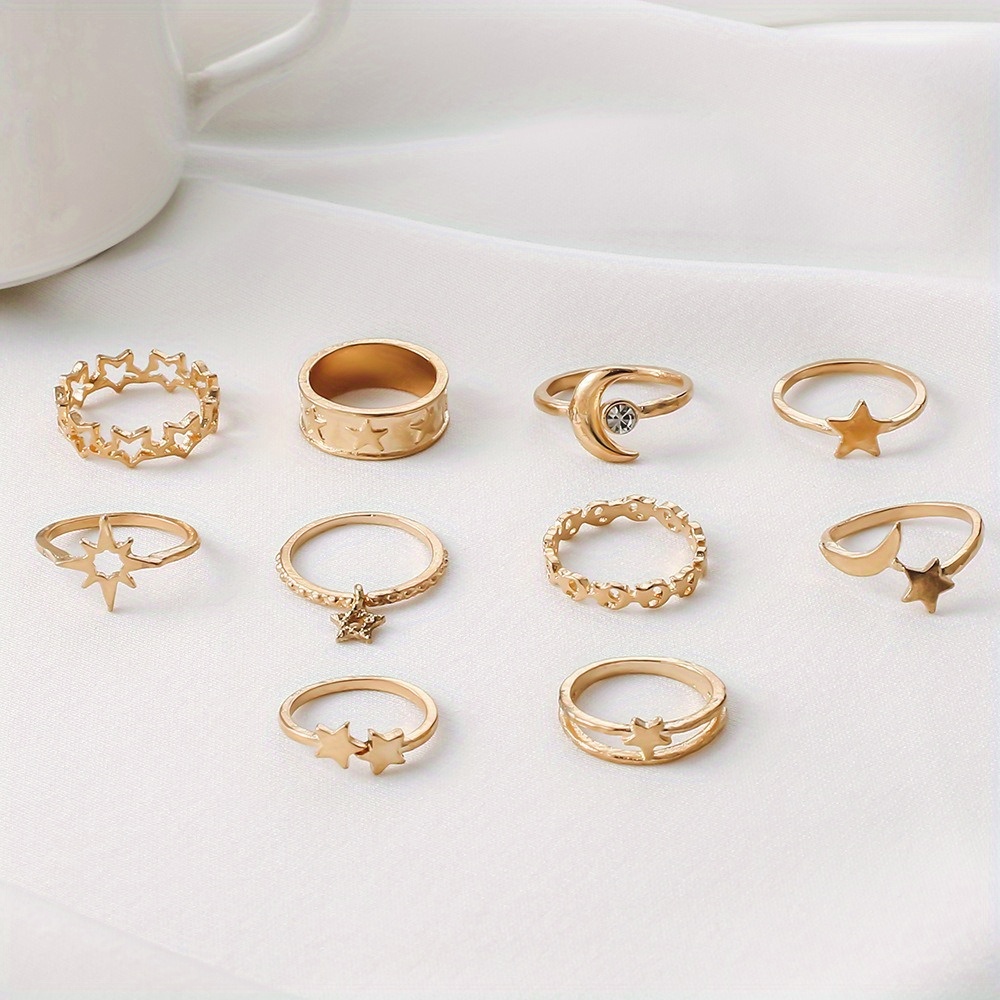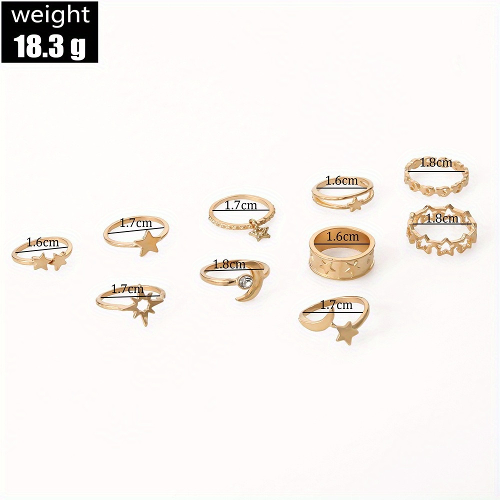 Star Crescent Diamond Ring Open Moon Star Ring Female Index Finger 10-piece Ring Set