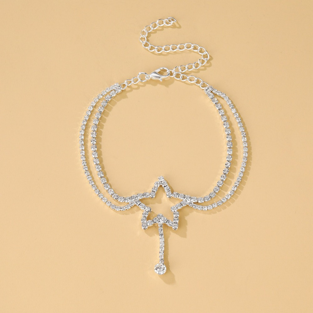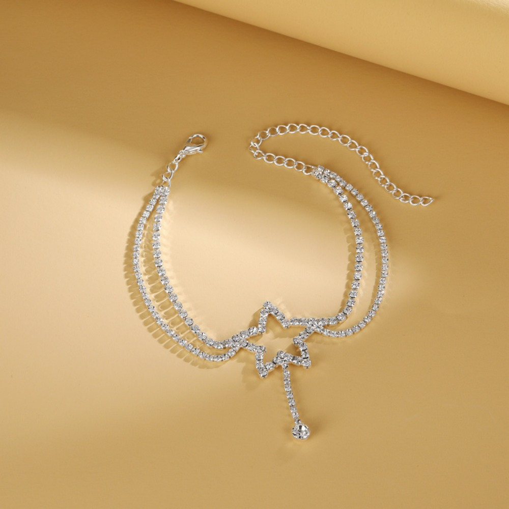 Star Double Rhinestone Anklet, Exquisite and Novel Shiny Beach Anklet Lady