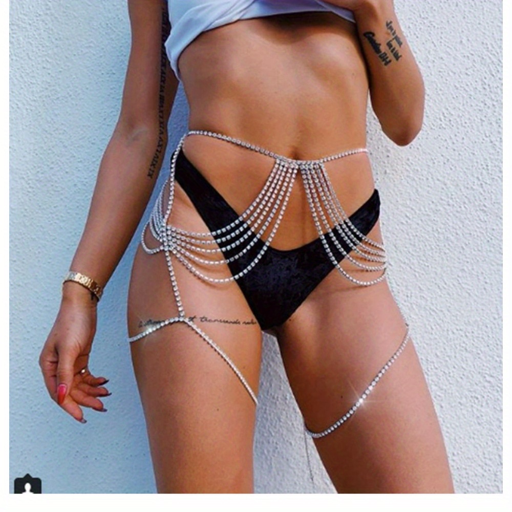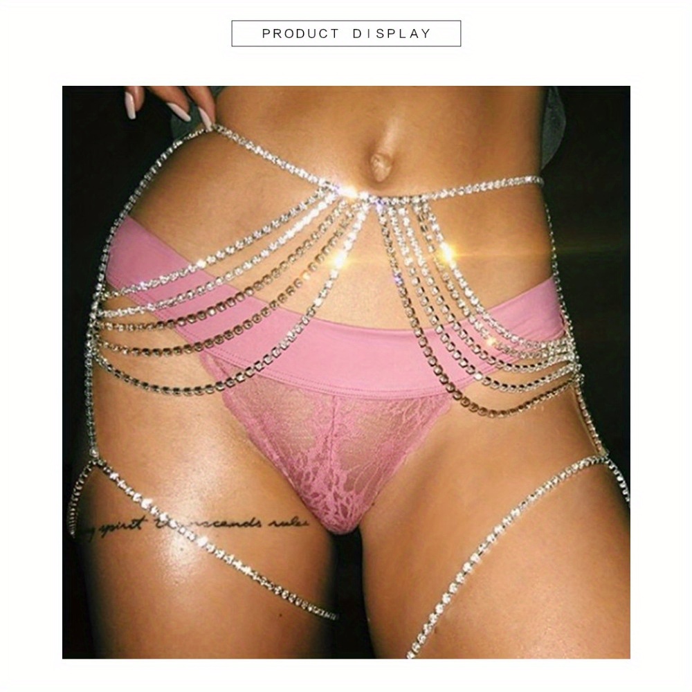Stylish and Sexy Tassel Full Diamond Thigh Chain, Trendy Girl Nightclub Rhinestone Body Chain