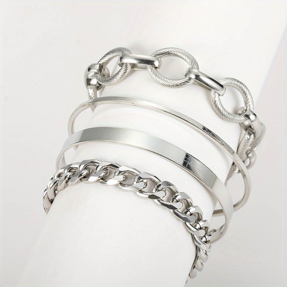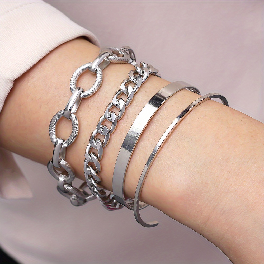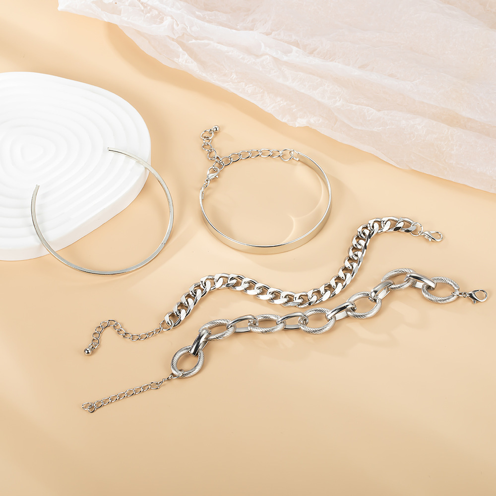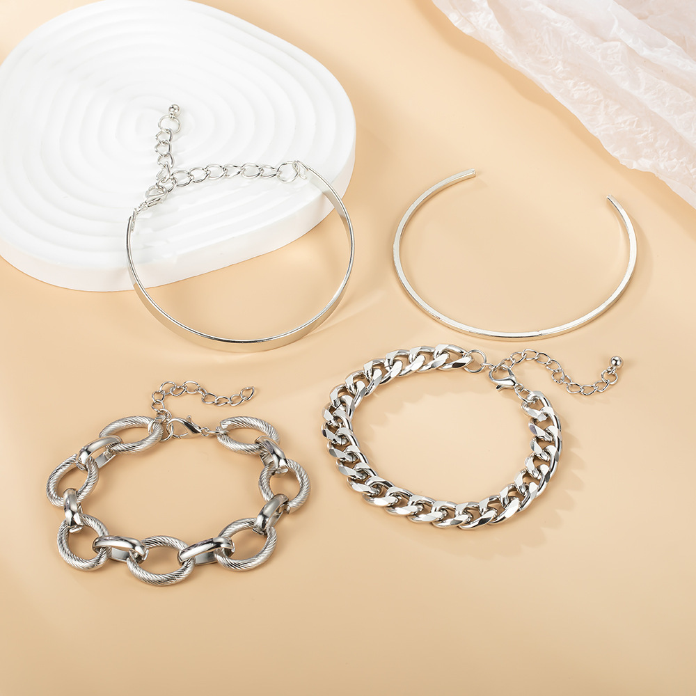 Stylish and Simple Alloy Thick Chain Opening 4 Piece Set Bracelet Bracelet