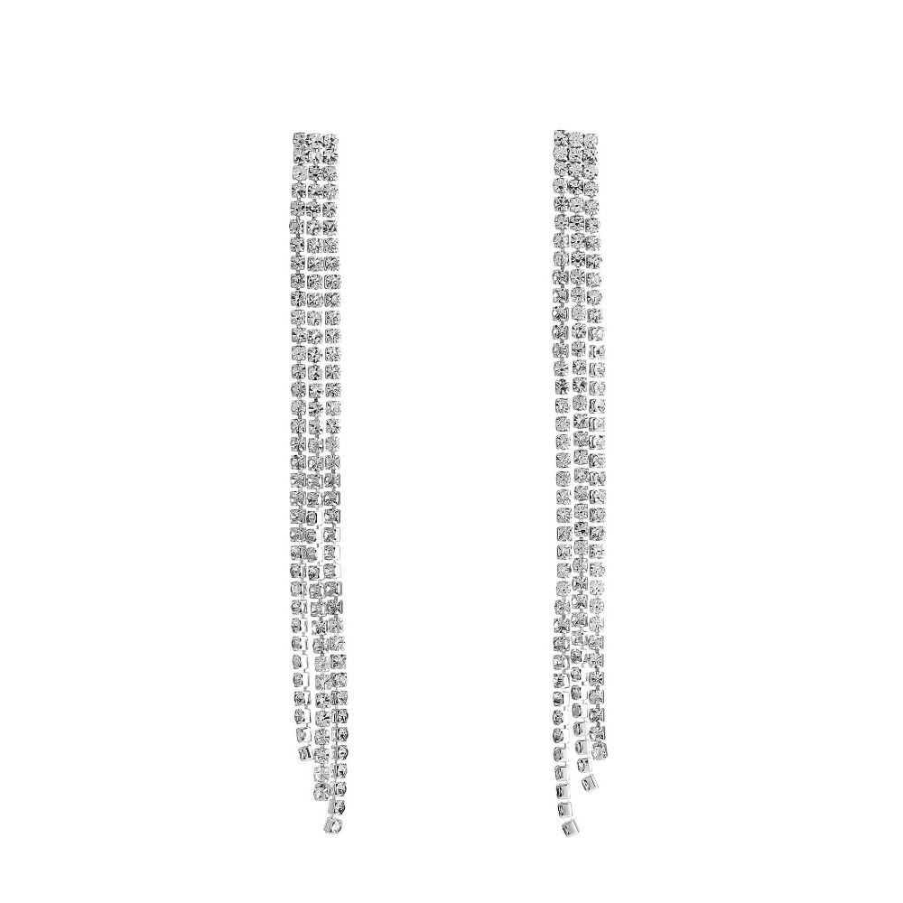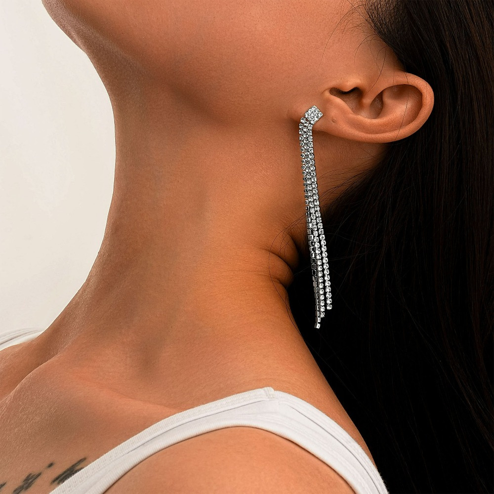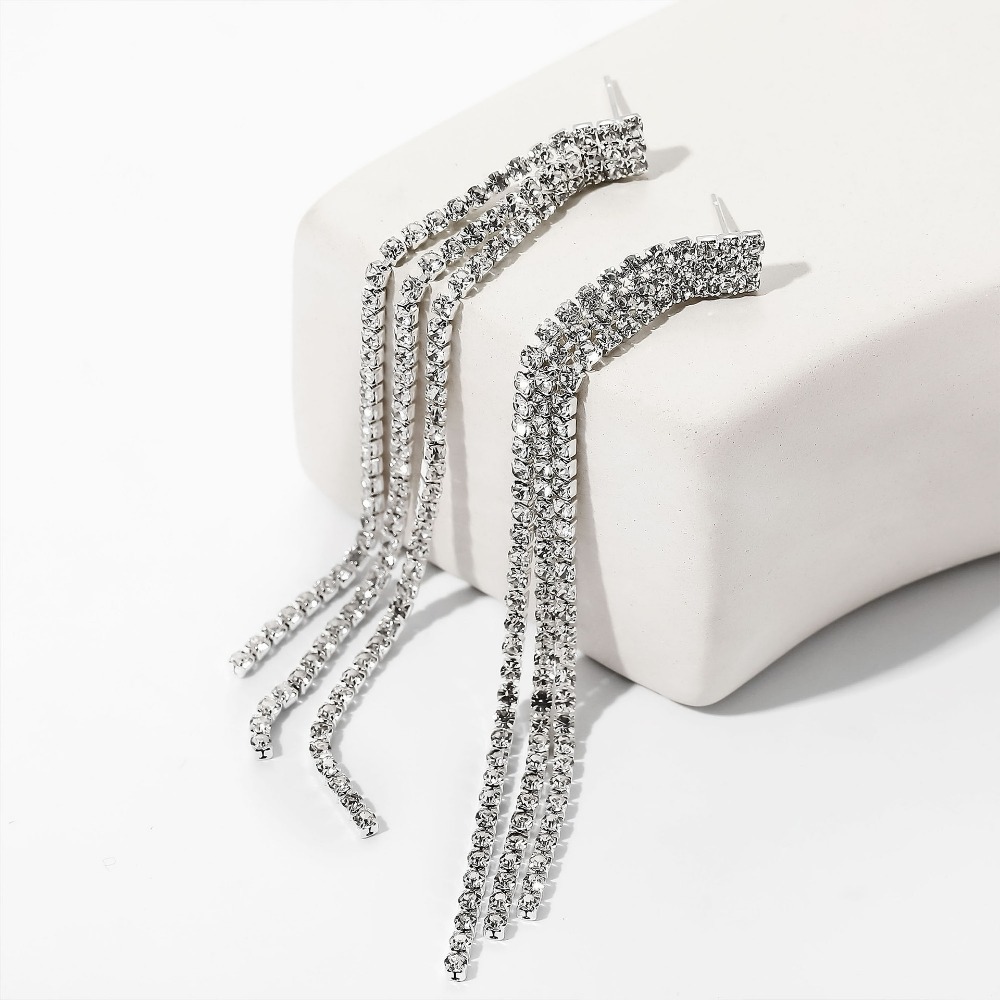 Stylish and Simple Full Diamond Long Tassel Ins Style Versatile Stud Earrings