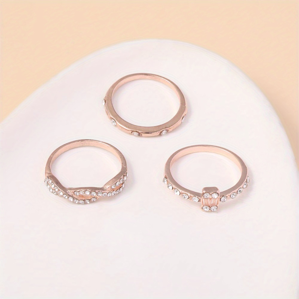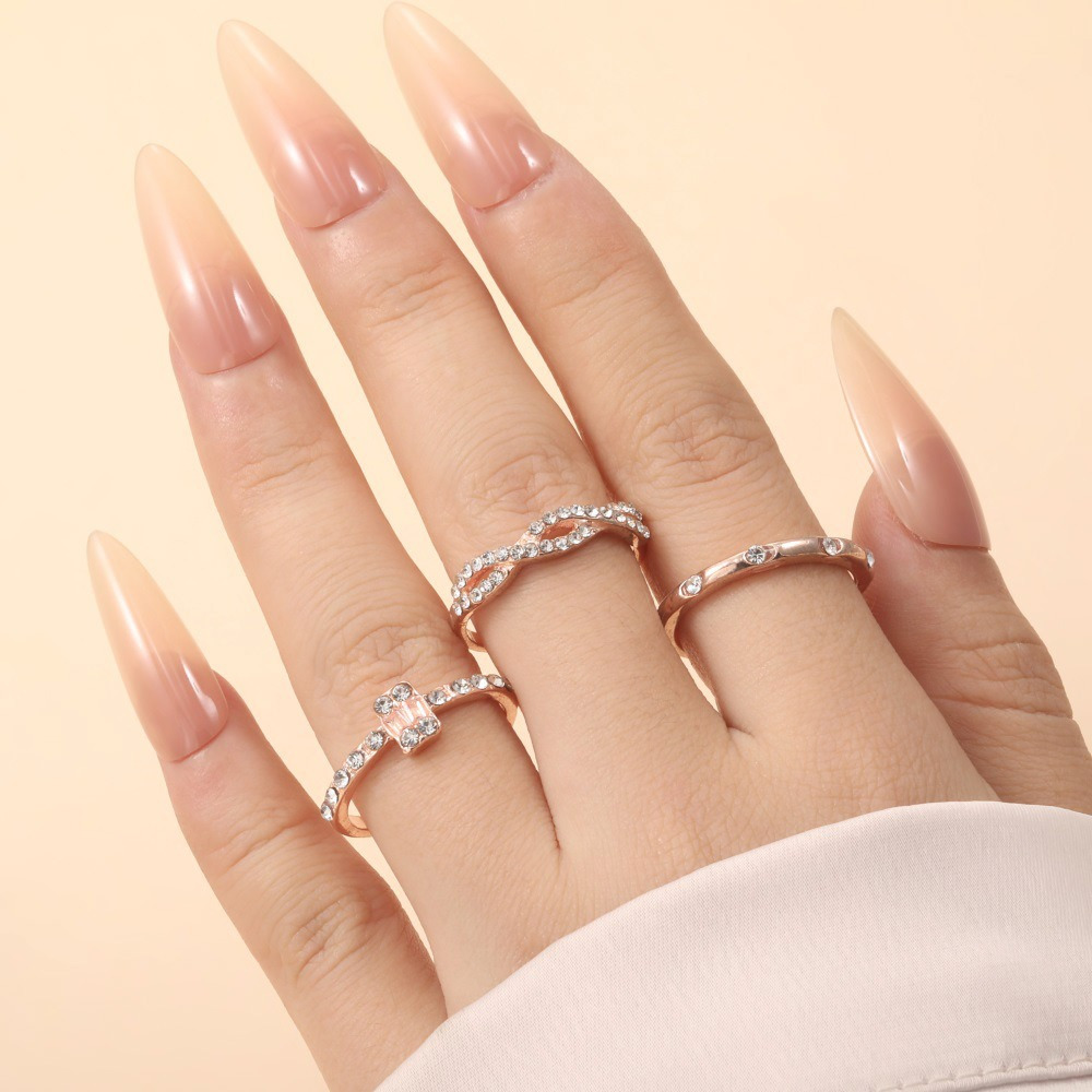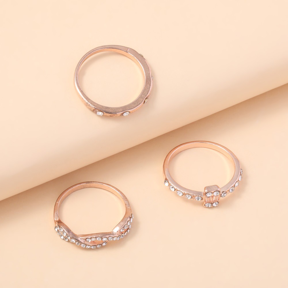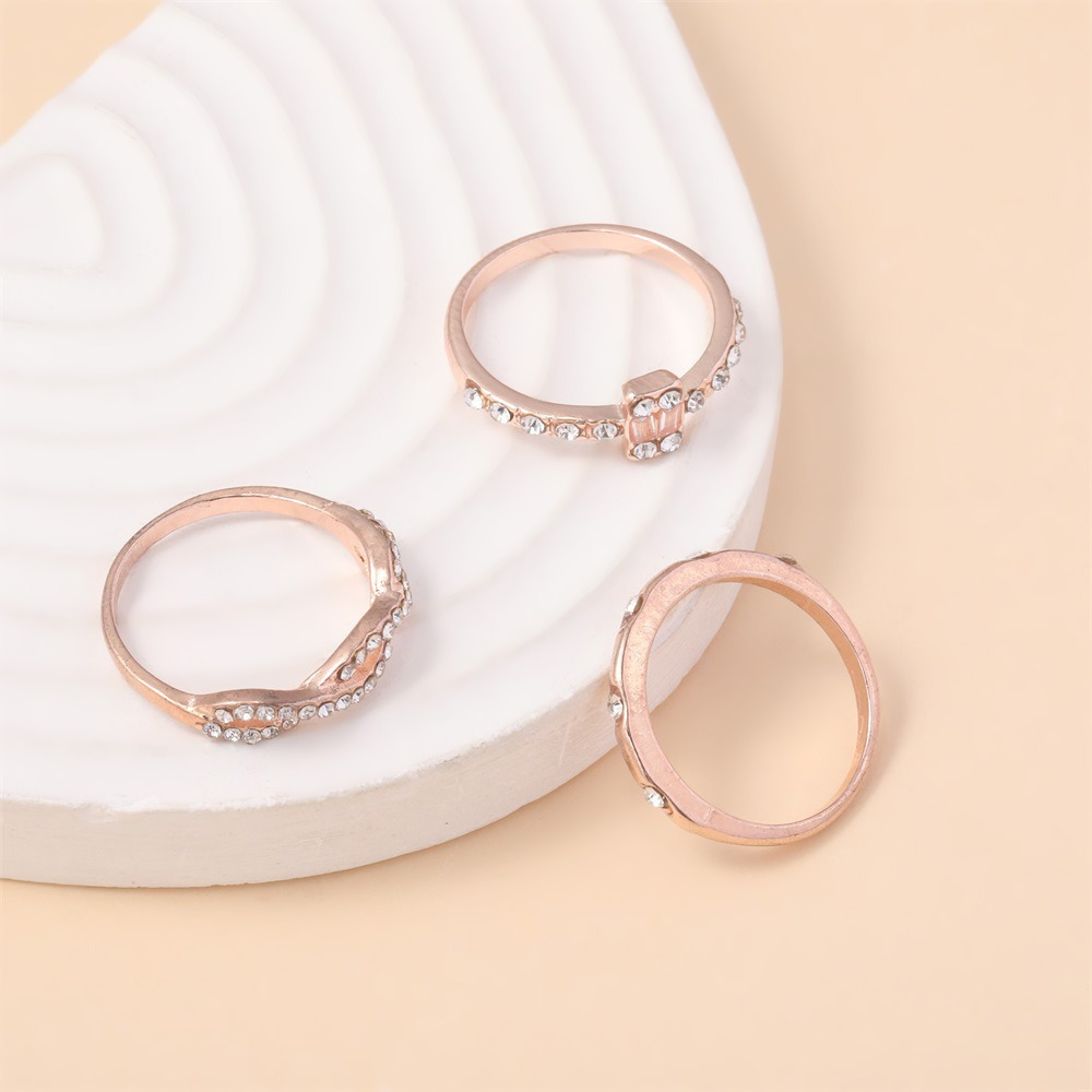 Stylish and simple point diamond rose gold 3-piece set ring jewelry