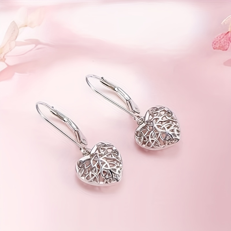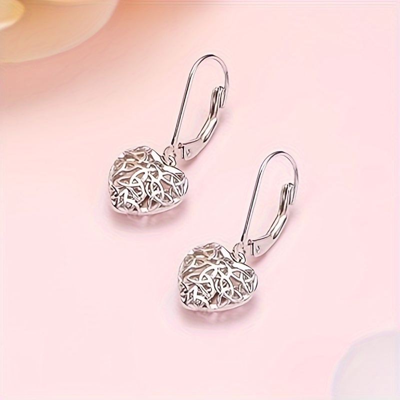 Stylish hollow heart pendant earrings, elegant filigree pendant earrings for engagement party, banquet jewelry, Valentine's Day anniversary gift, women's fashion accessories, minimalist style