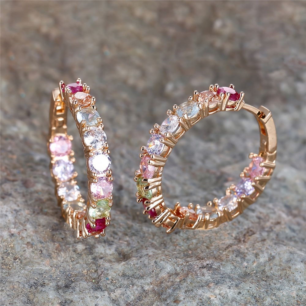 Stylish Rainbow Zircon Ring Earrings - Vintage Bohemian Style Perfect for Party and Everyday Elegance