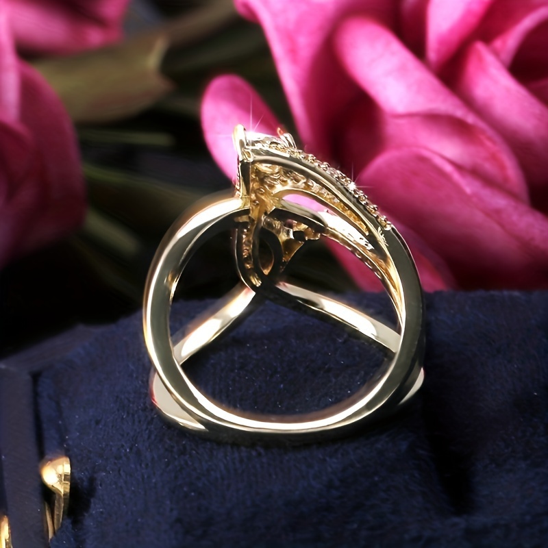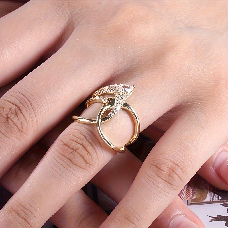 Stylish Ring Special Knot Design 18k Gold Plated Paved Shining Zirconia Match Daily Outfits Party Accessory Dupes Luxury Jewelry