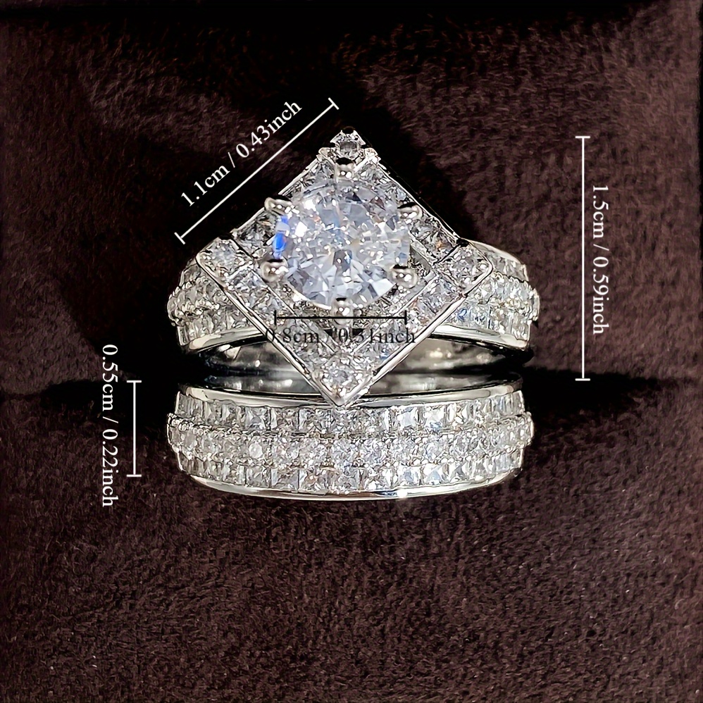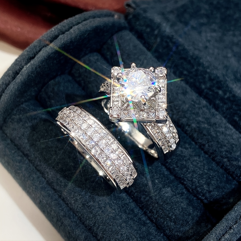 Stylish Silver 4A Zirconia Square Engagement Wedding Ring 2-piece Set