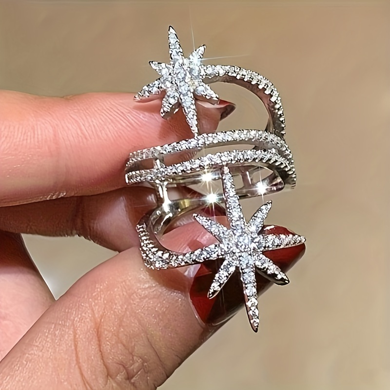 Stylish Snowflake Sparkling Zirconia Ring Elegant Wedding Ring Christmas Party Ring (No Box)