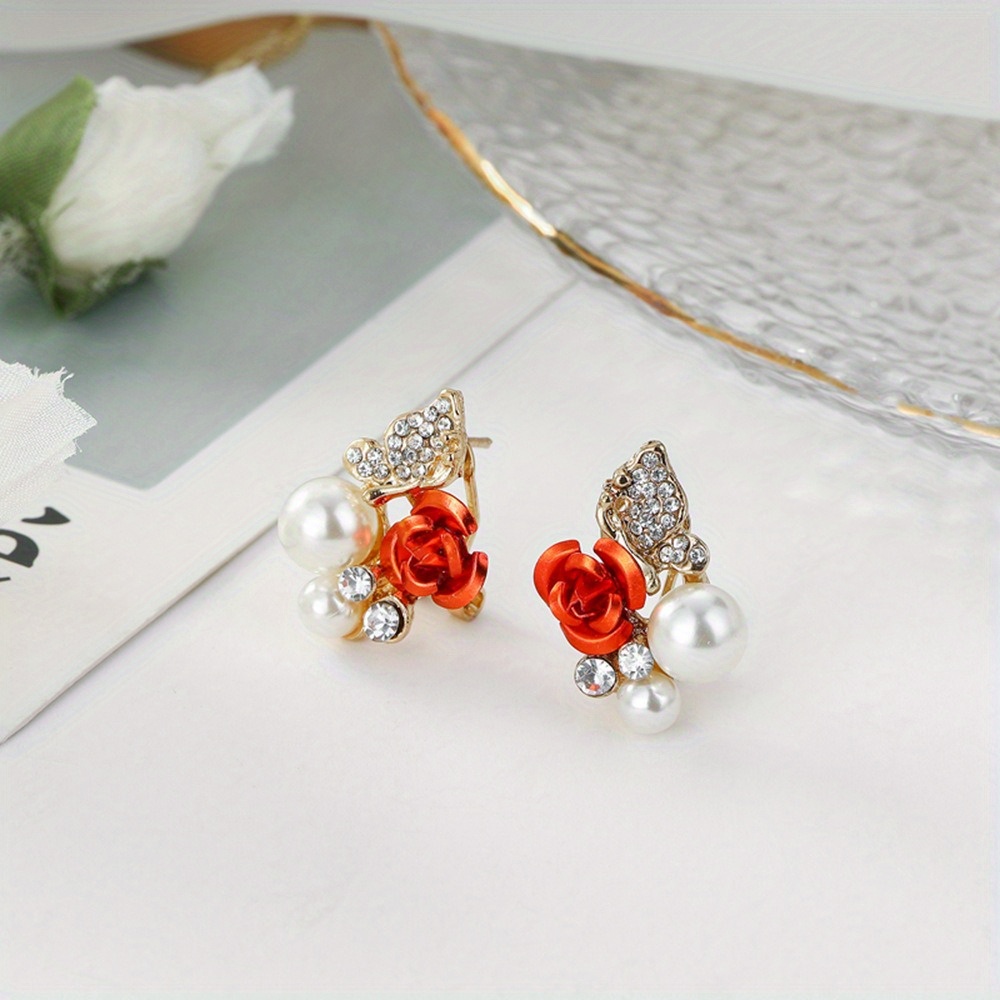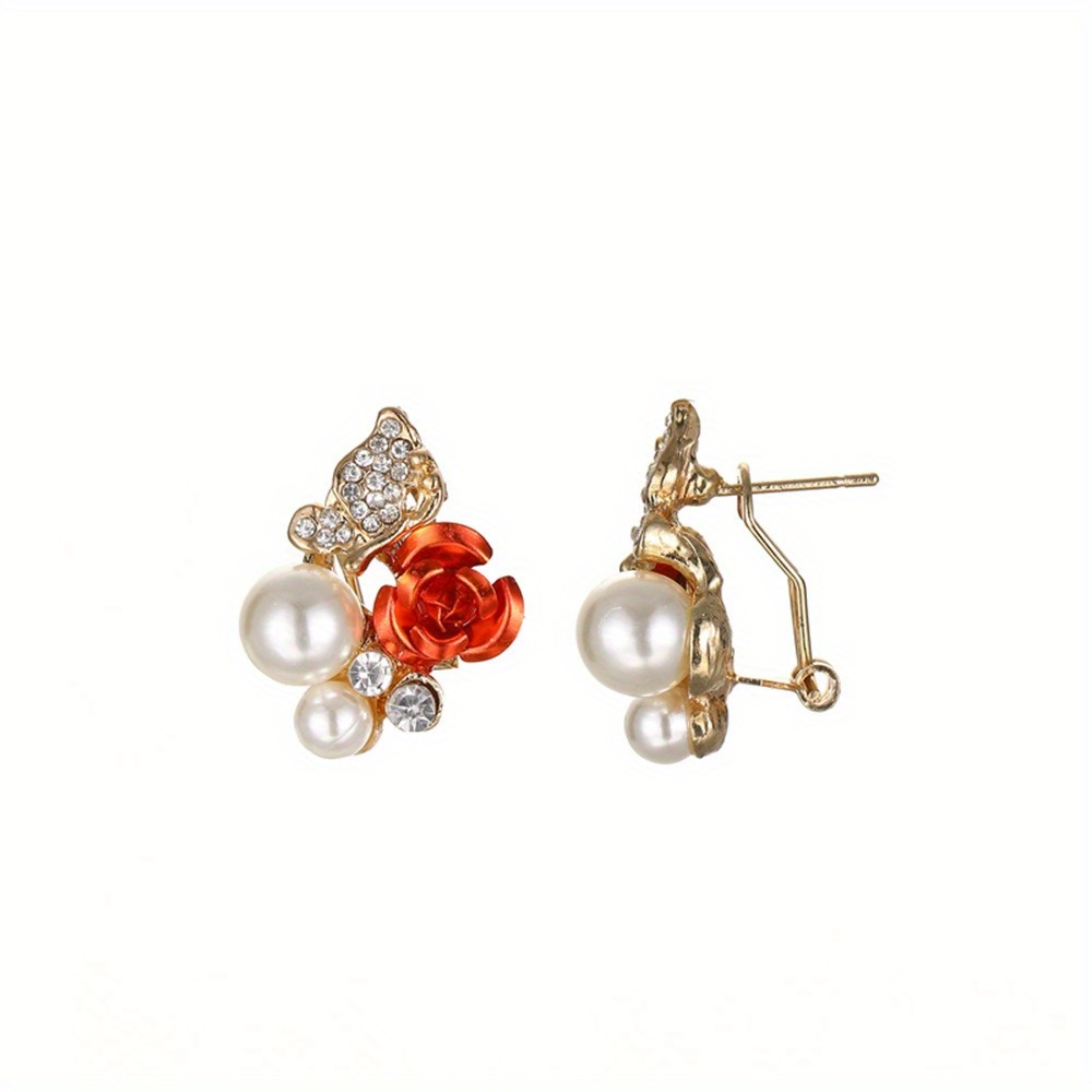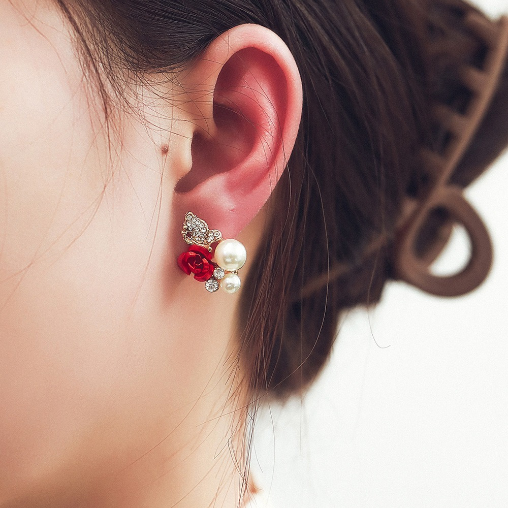 Temperament Exquisite Fashion Rhinestone Pearl Rose Butterfly Bridal Ear Clasp Earrings