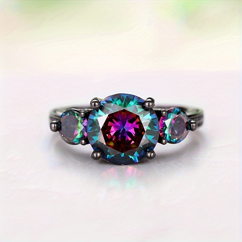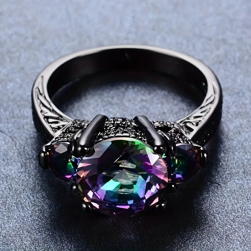 The stylish ring set with sparkling gemstones reflects the colorful lights, symbolizing mystery and beauty as the perfect anniversary/birthday gift for your loved one
