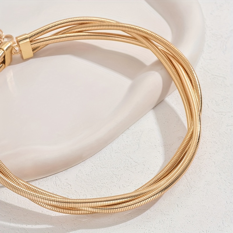 Three-strand alloy necklace plated with 14K gold - women's simple and sexy style, no mosaic, suitable for daily wear, suitable for all seasons