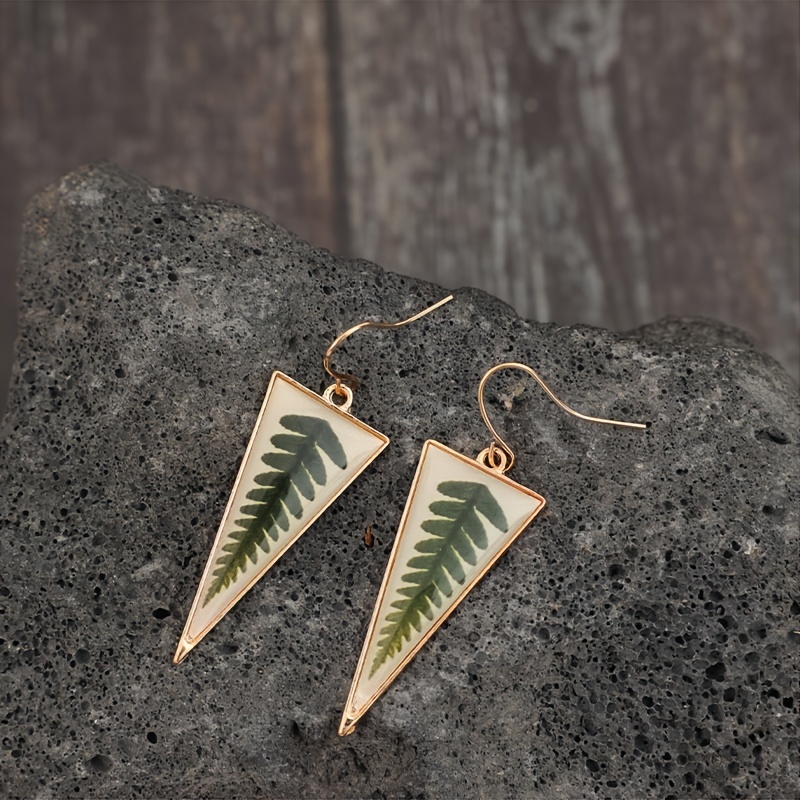 Transparent triangular green leaf pattern pendant earrings retro minimalist style alloy jewelry holiday earrings