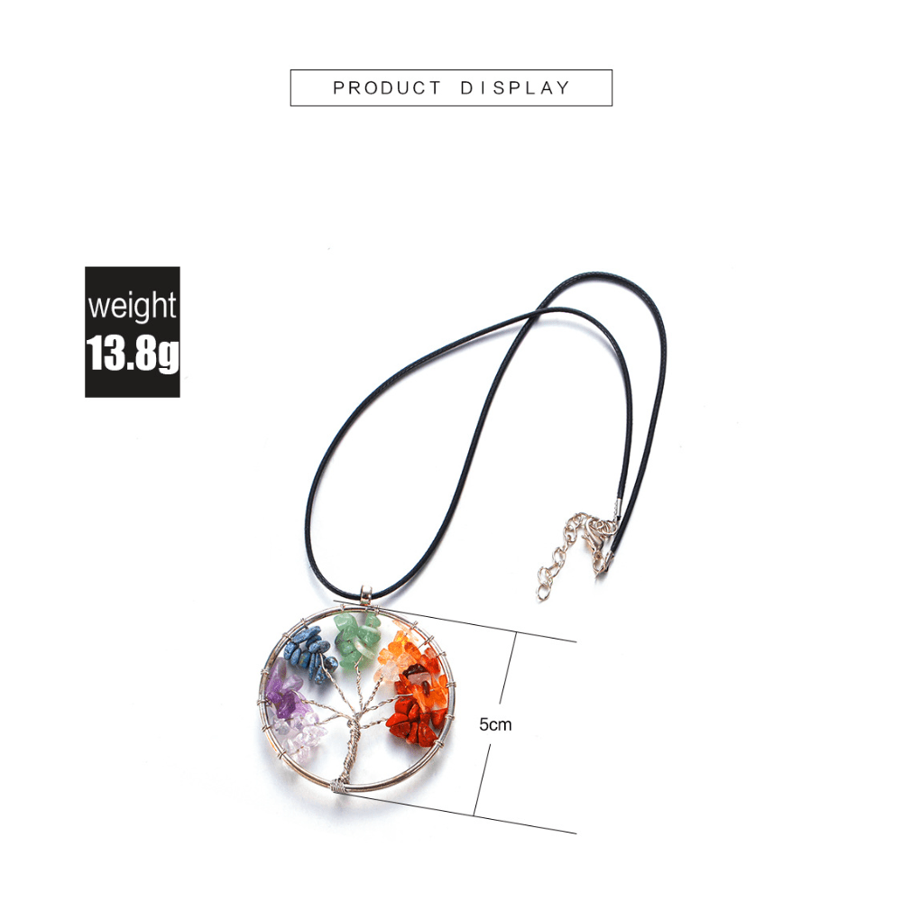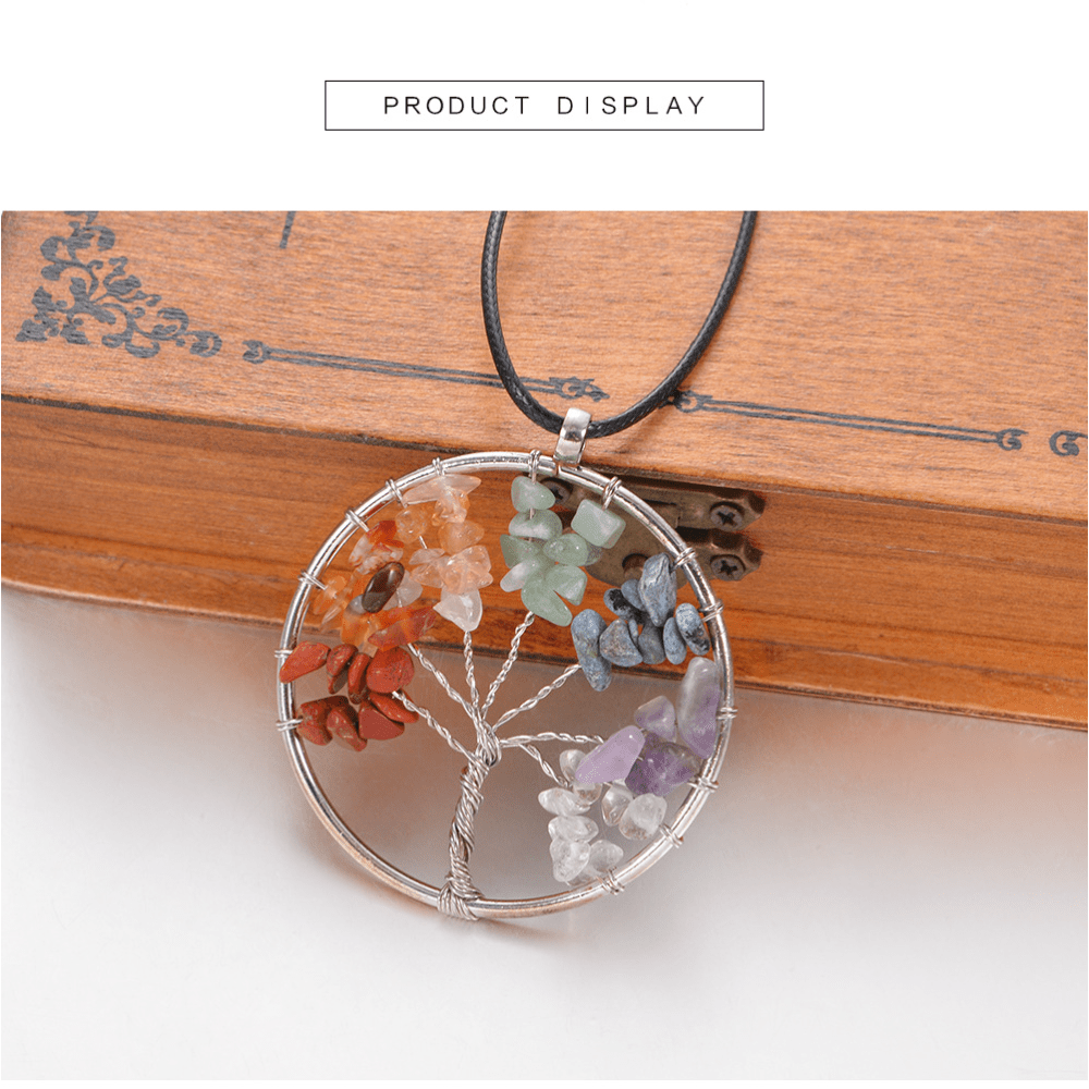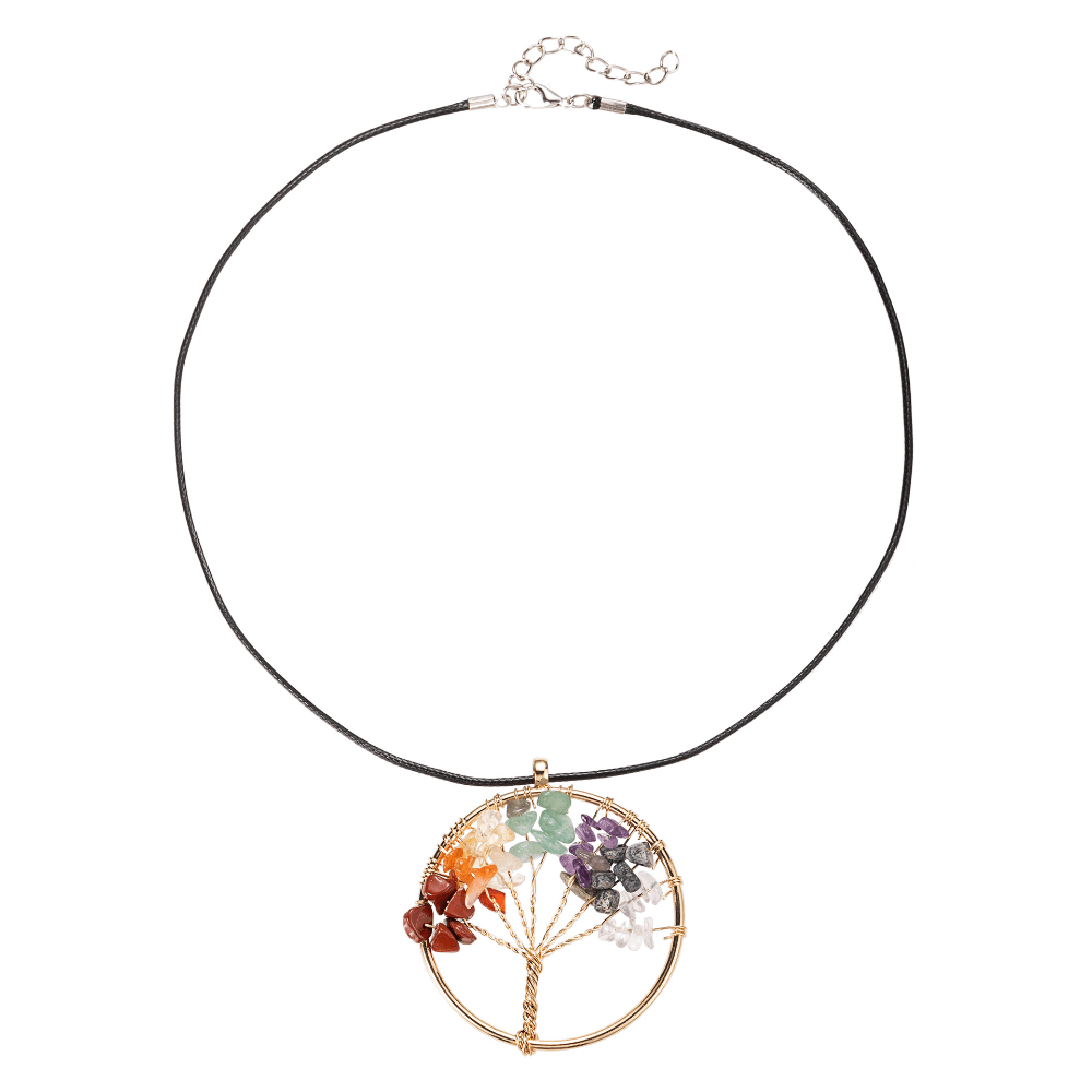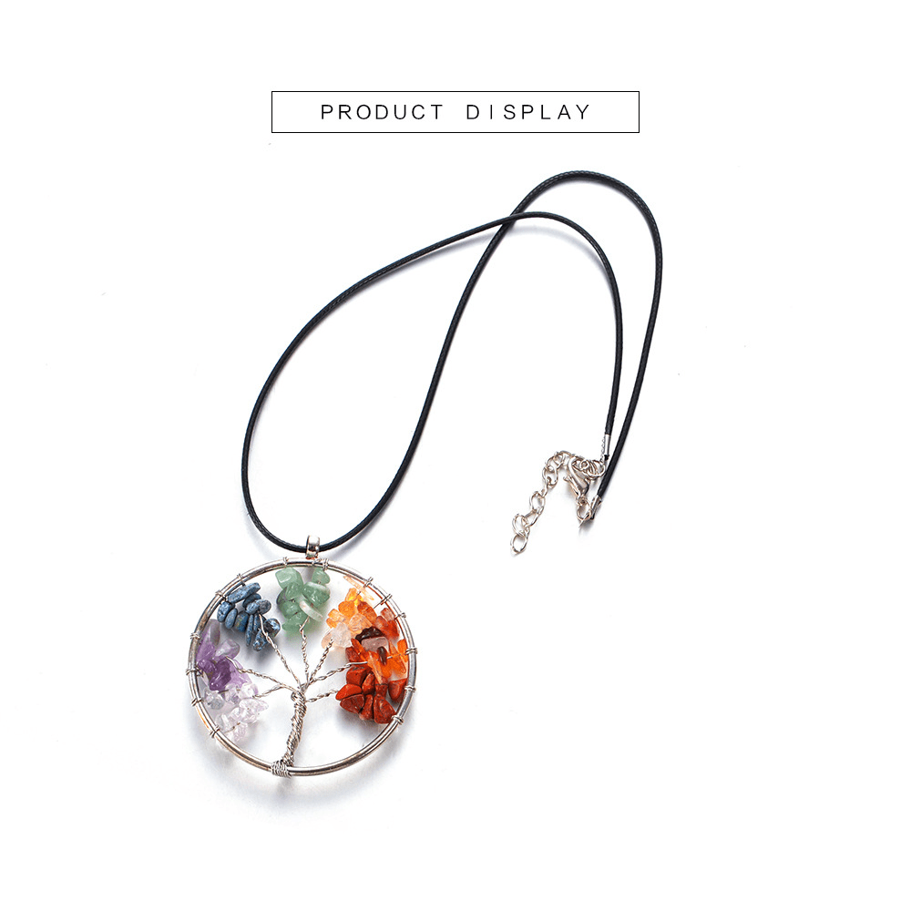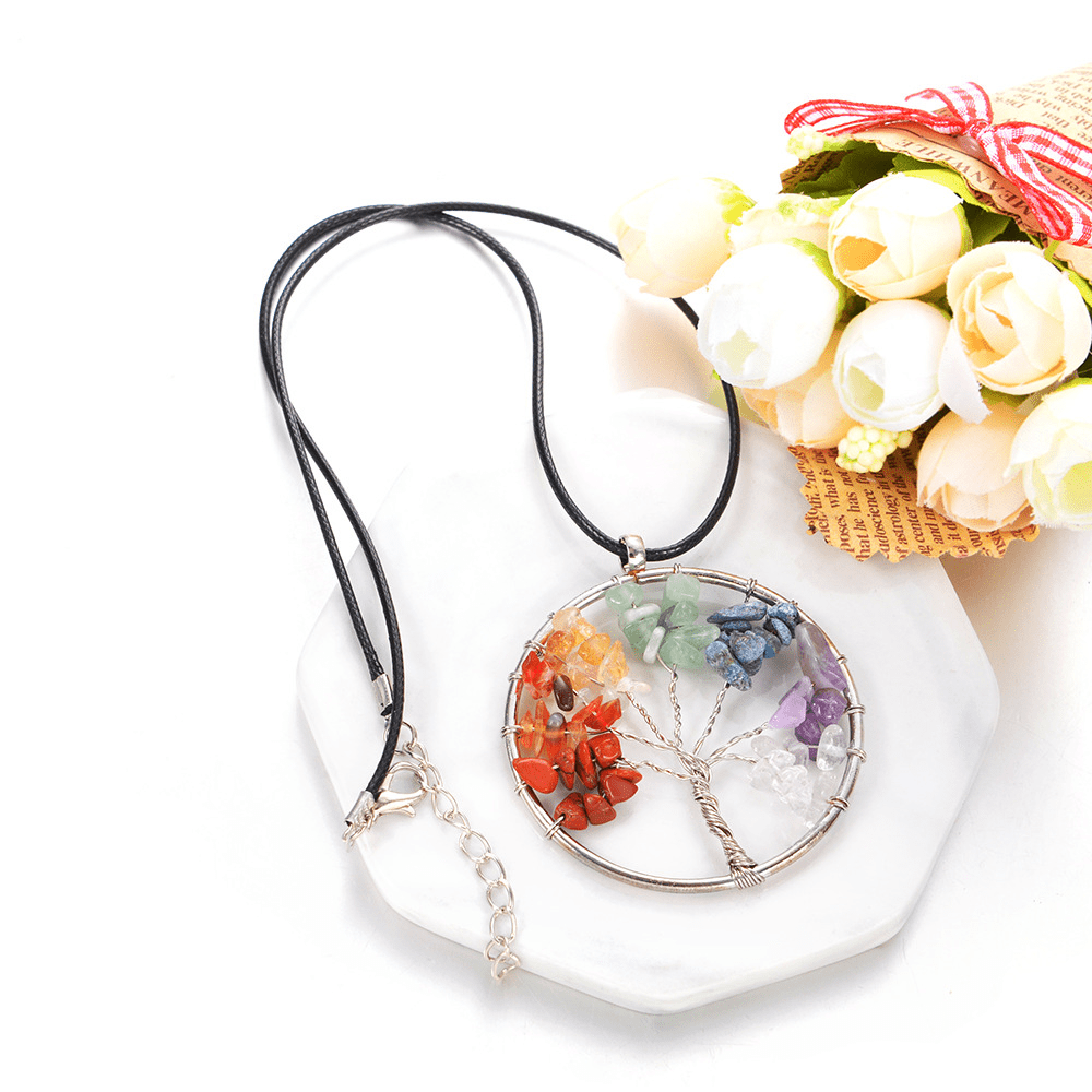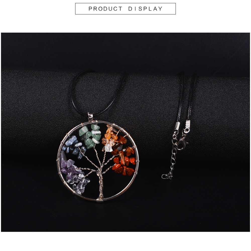 Tree of Life, Colorful Natural Stone Leather Rope Fortune Tree Necklace, Natural Gravel Color Pendant Necklace