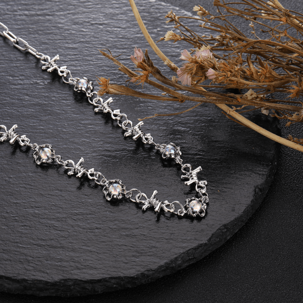 Trend Thorn Splicing Moonstone Necklace Sweet Cool Collarbone Chain Ins Hip Hop Cold Wind Accessories