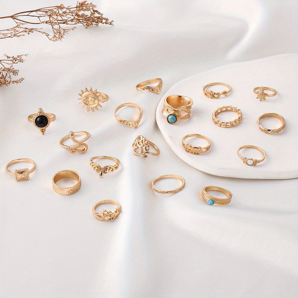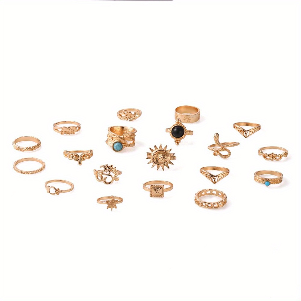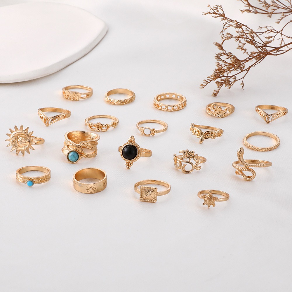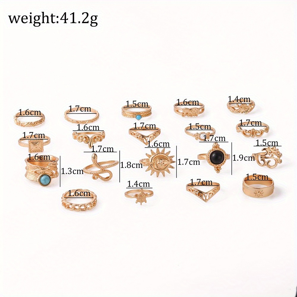 Turquoise Set Ring Personality Snake Turtle Fashion Black Gem Hollow Elephant Combination 19-piece Set Women