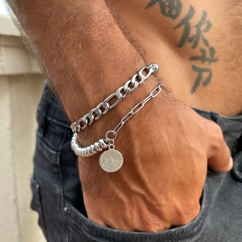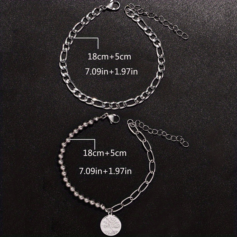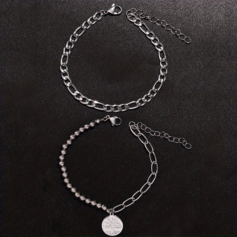 Two Punk Style Tree of Life Copper Pendant Stainless Steel Chain Men's Bracelet Set for Party, Casual, Holiday and Travel Accessories