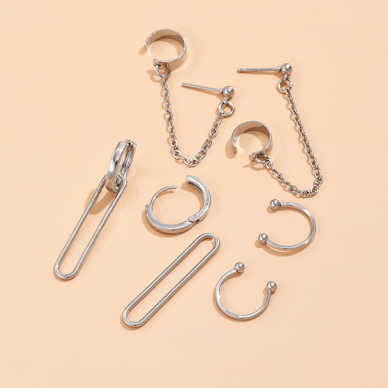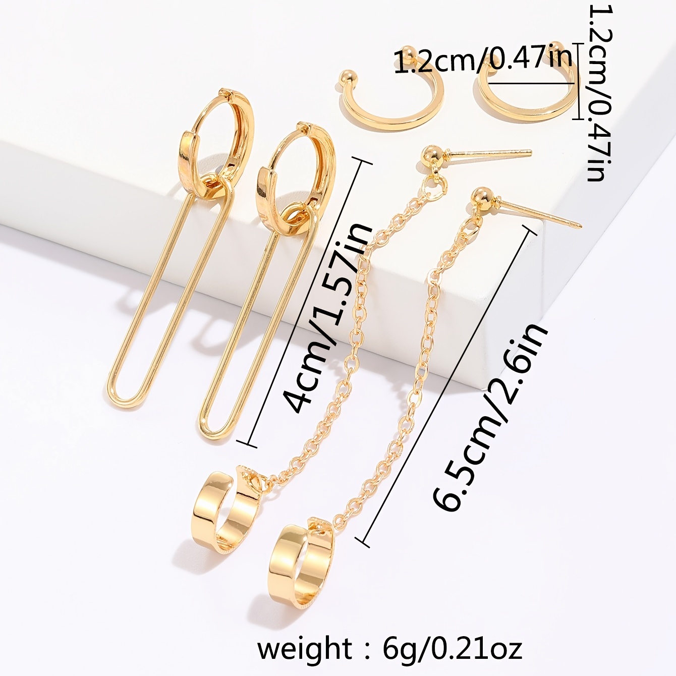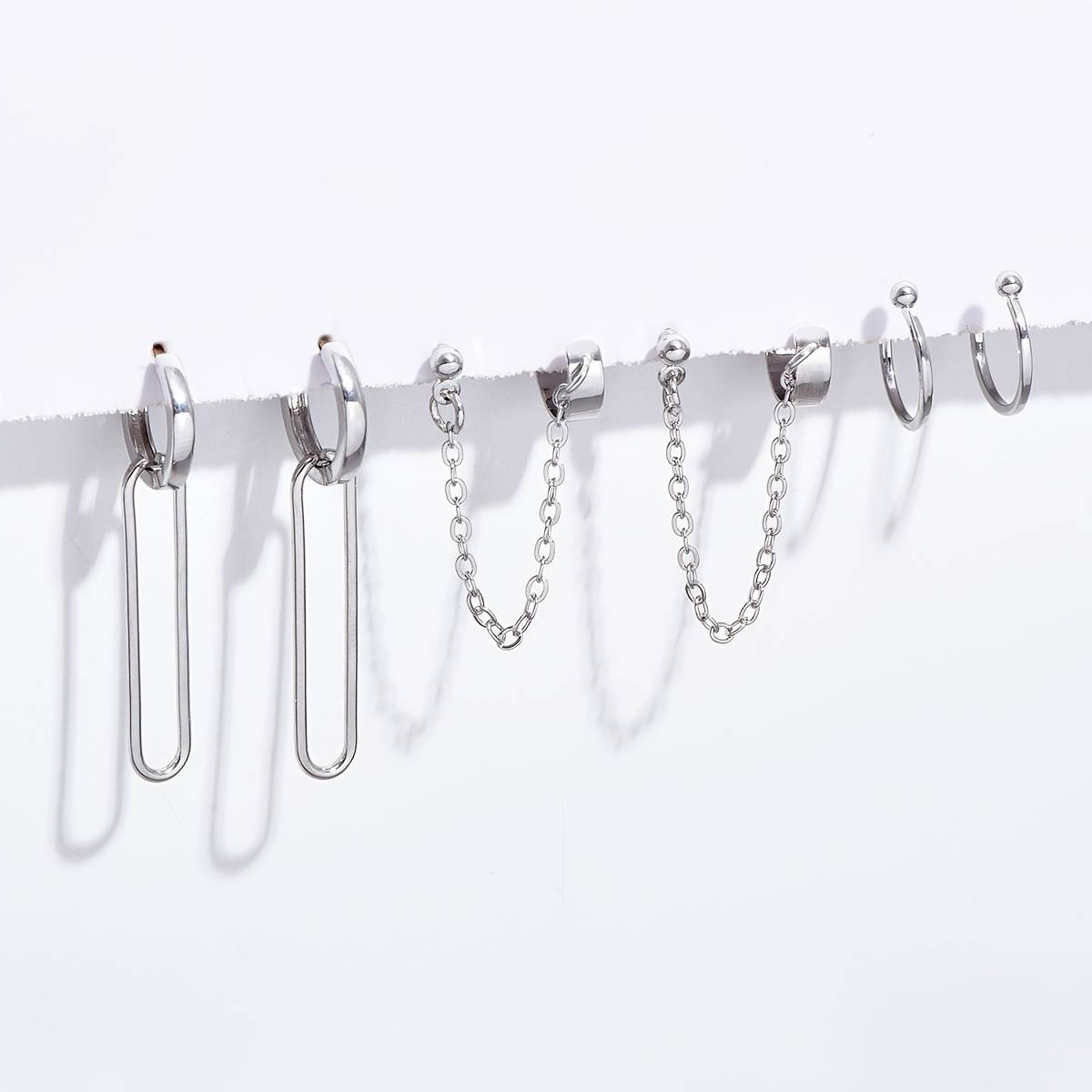 U-shaped stud earrings 3 pairs of earrings metal clips geometric women's jewelry set