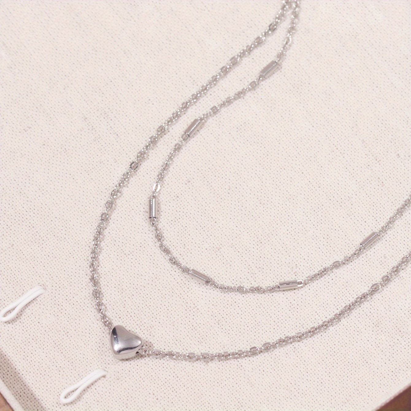 Unruly Minimalist Stainless Steel Heart Pendant Double Necklace, Ladies Party Jewelry Accessories