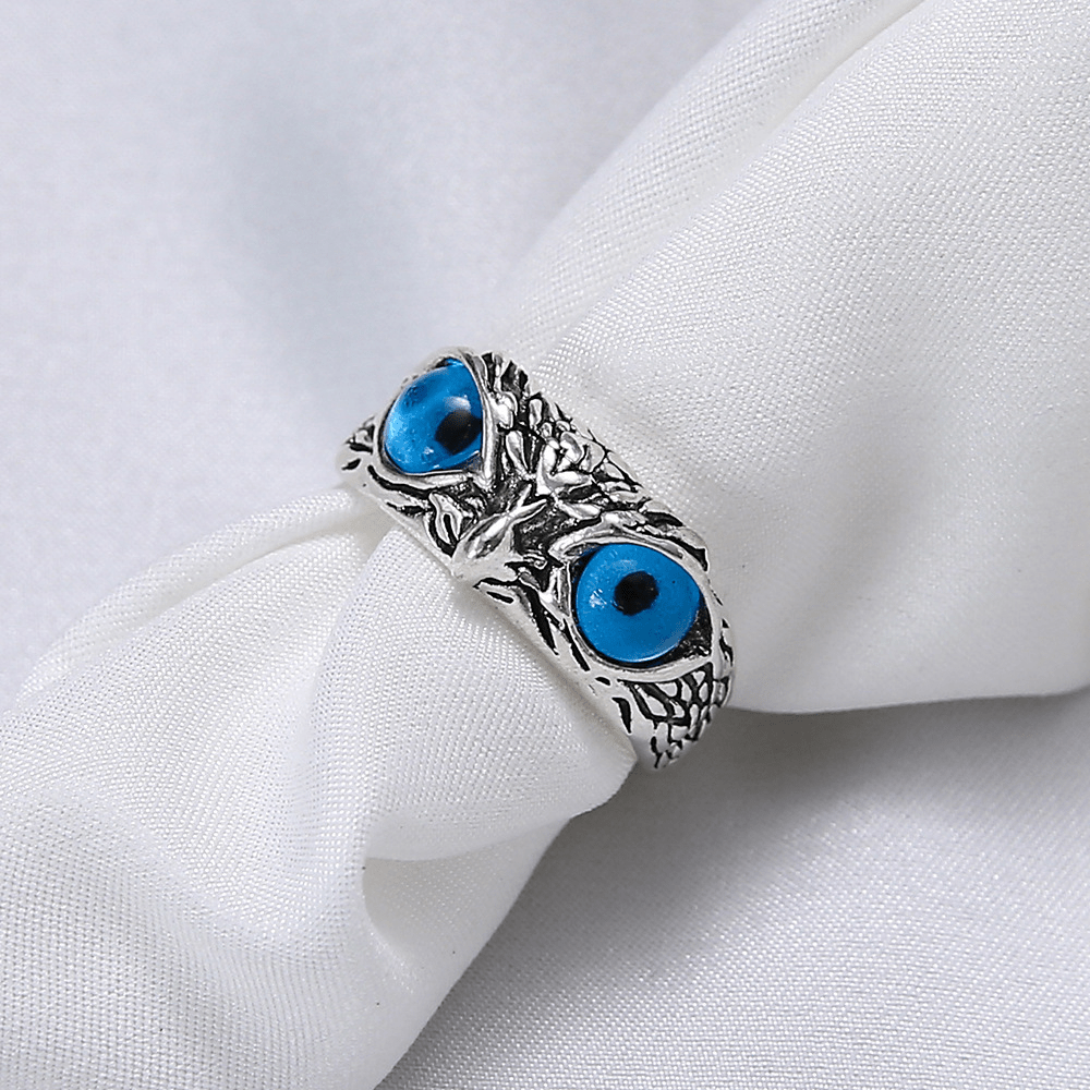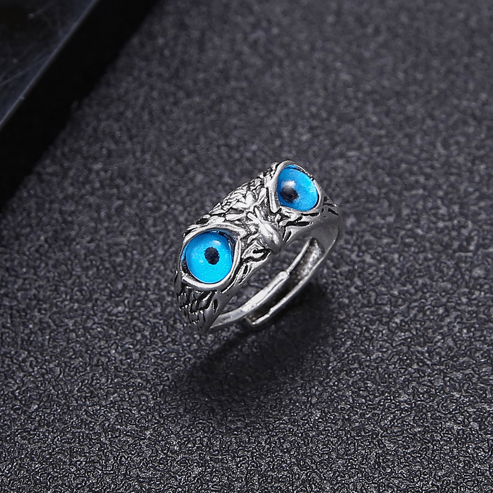 Vintage Alloy Blue Eyed Owl Ring Alloy Adjustable Girl Jewelry