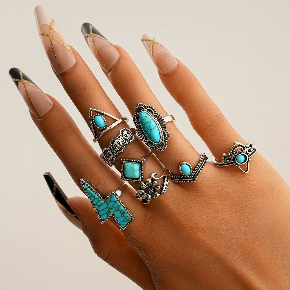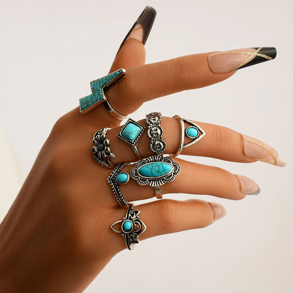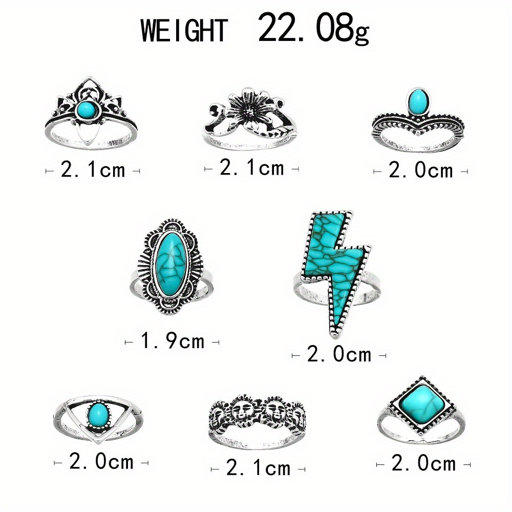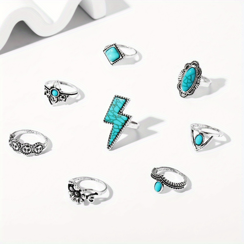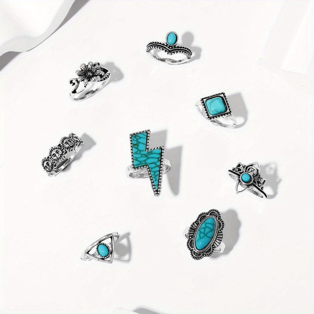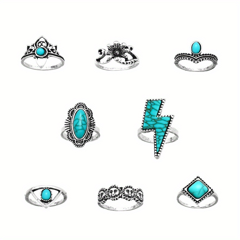 Vintage Bohemian Lightning Flower Turquoise 8-Piece Set Jewelry