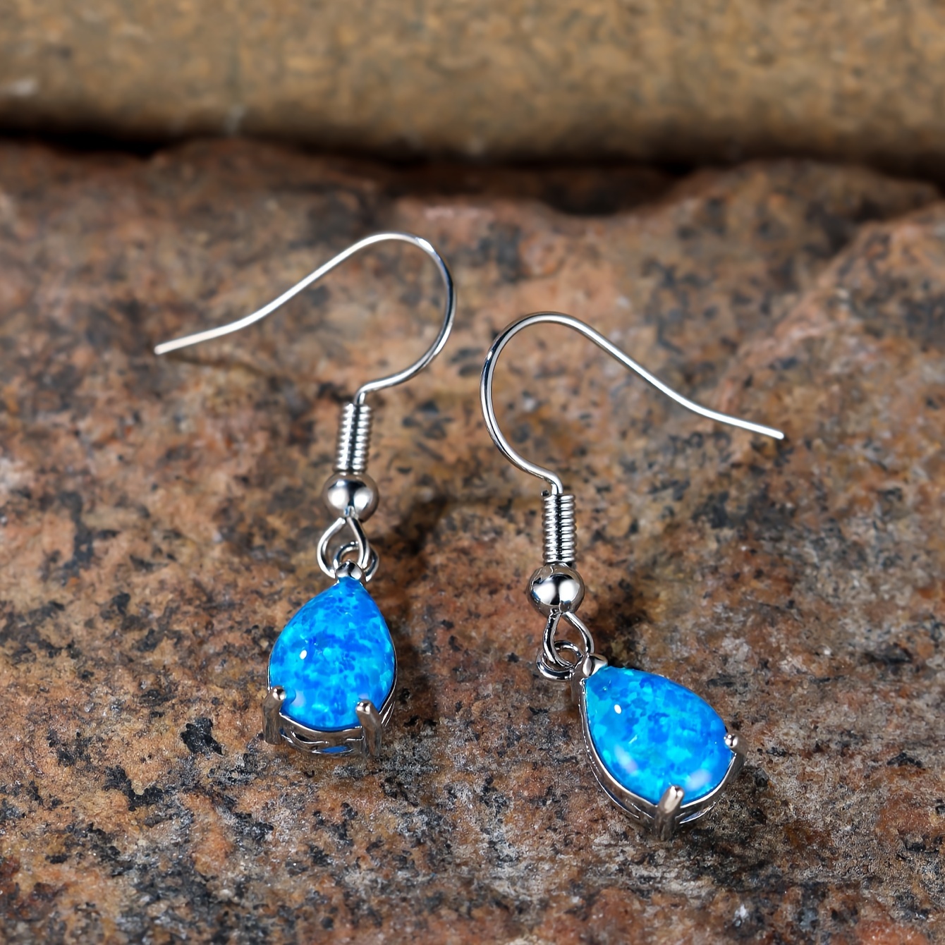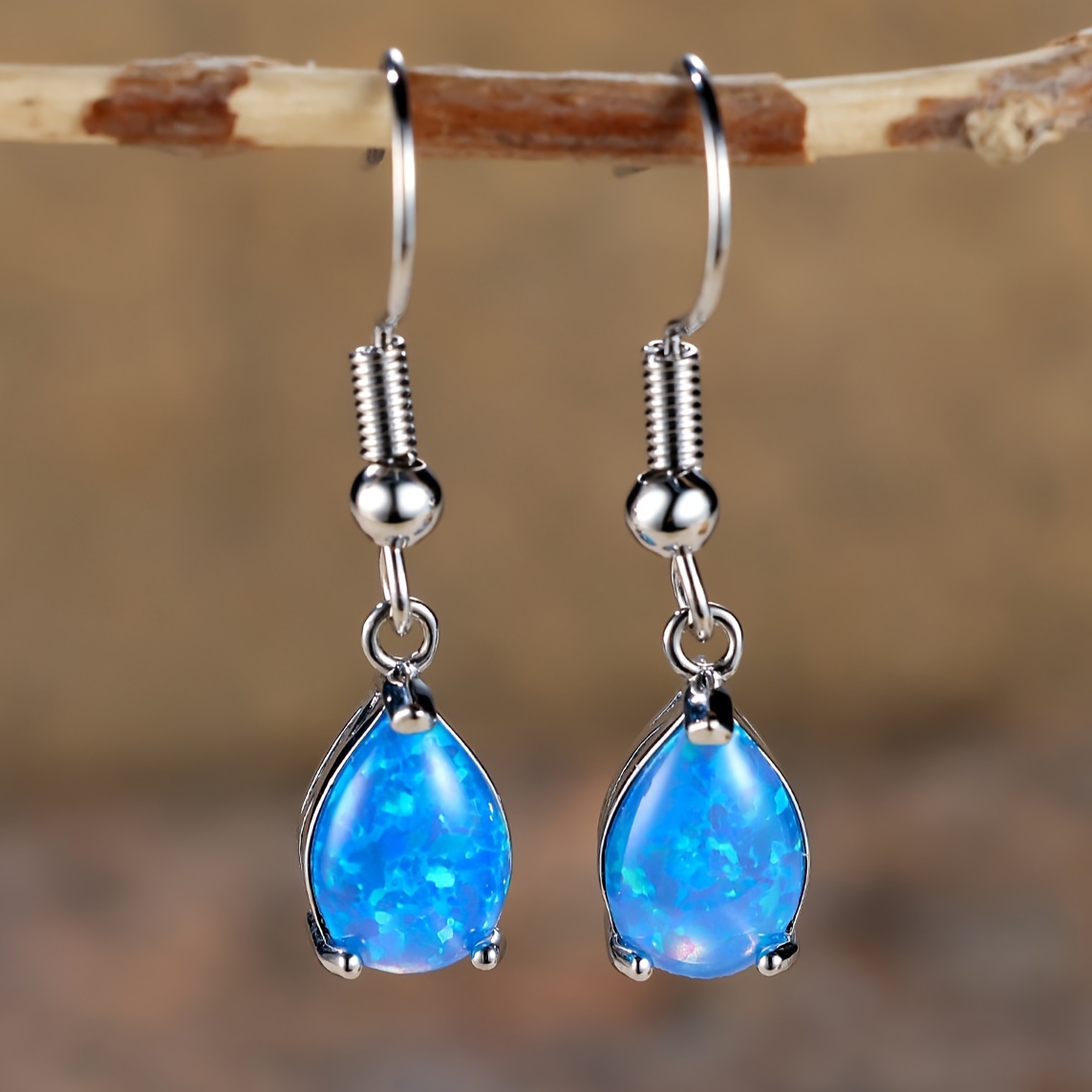 Vintage Bohemian Pendant Earrings, Teardrop-Shaped Opal, Copper Strap Copper Ears, No Plating, Suitable for Vacations and Weddings - 1 Pair
