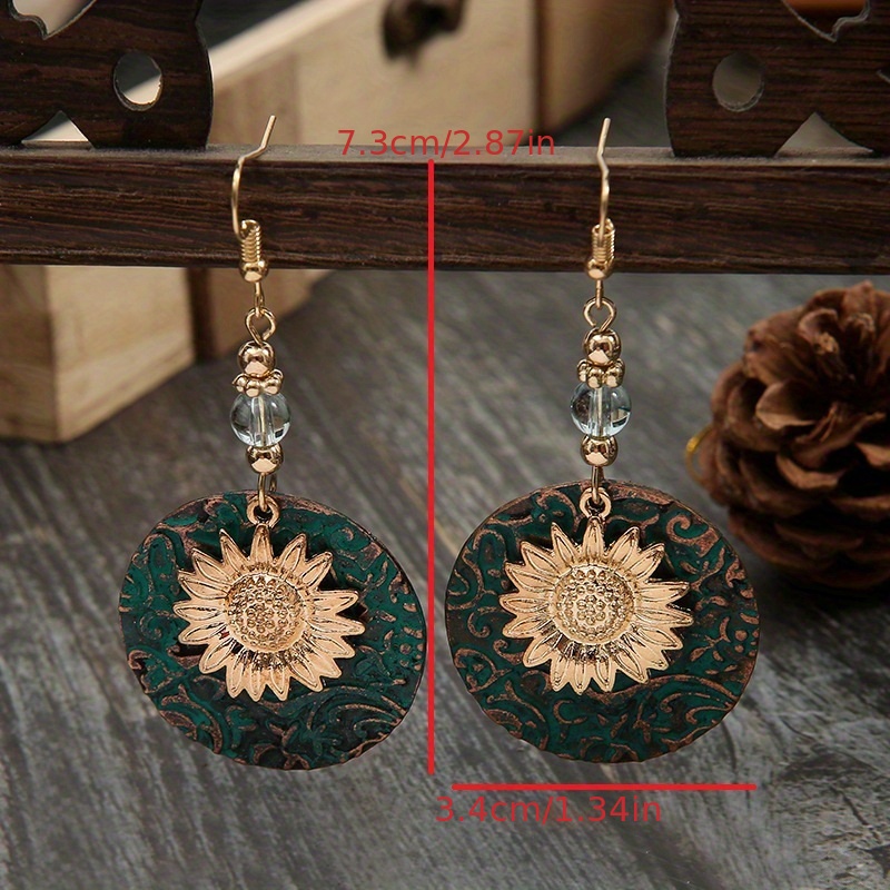 Vintage Bohemian Sunflower Round Drop Earrings Alloy Jewelry Exquisite Gifts for Women