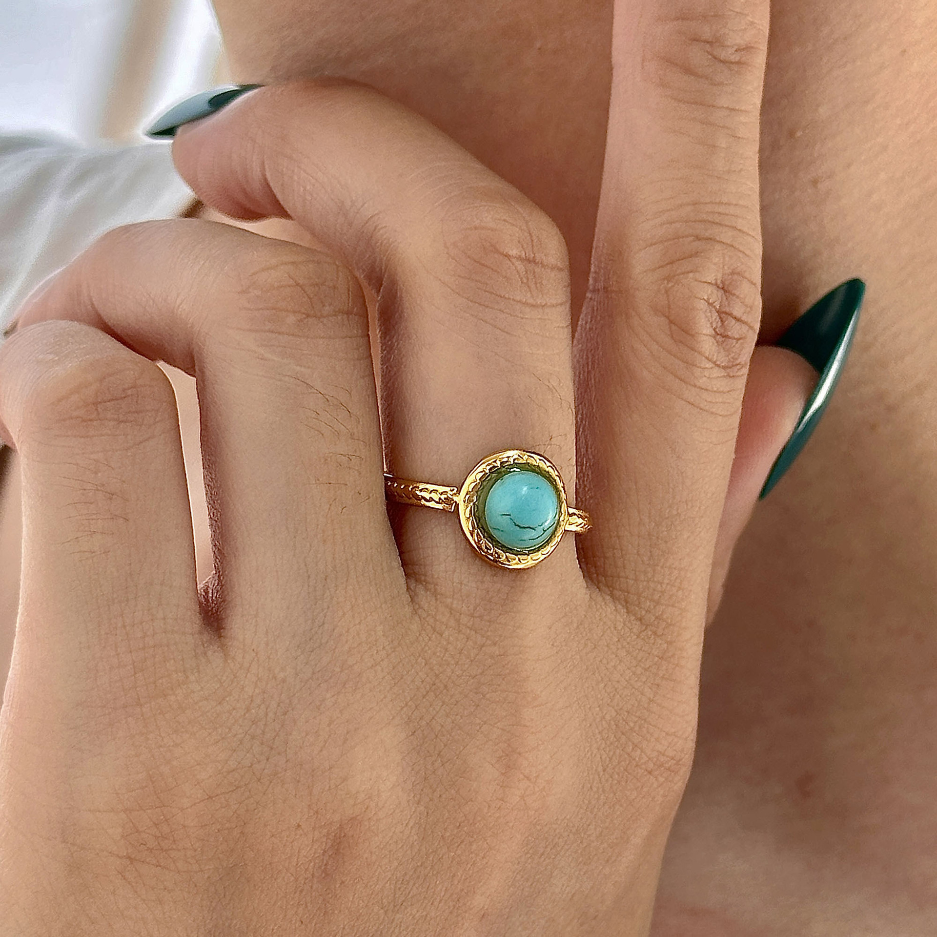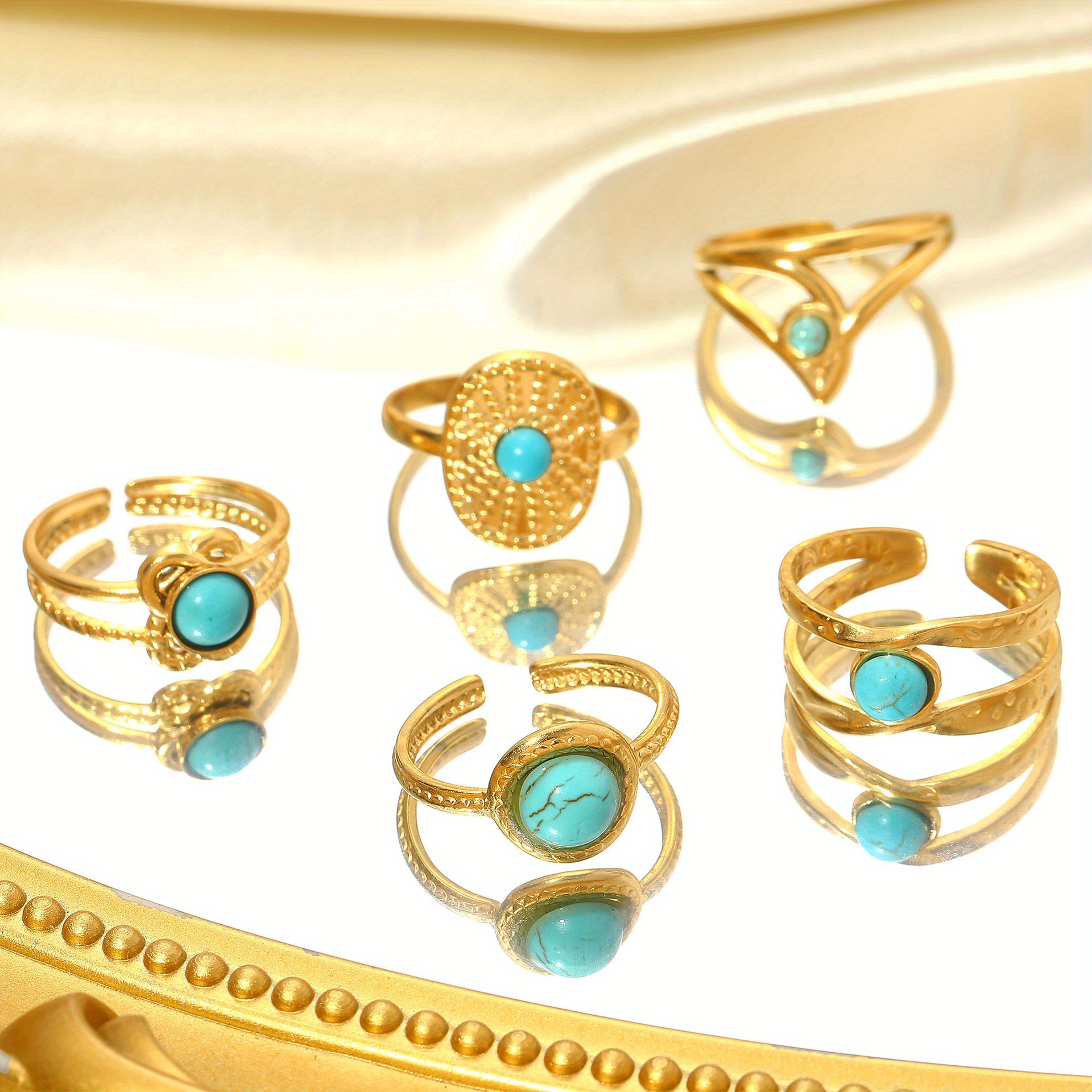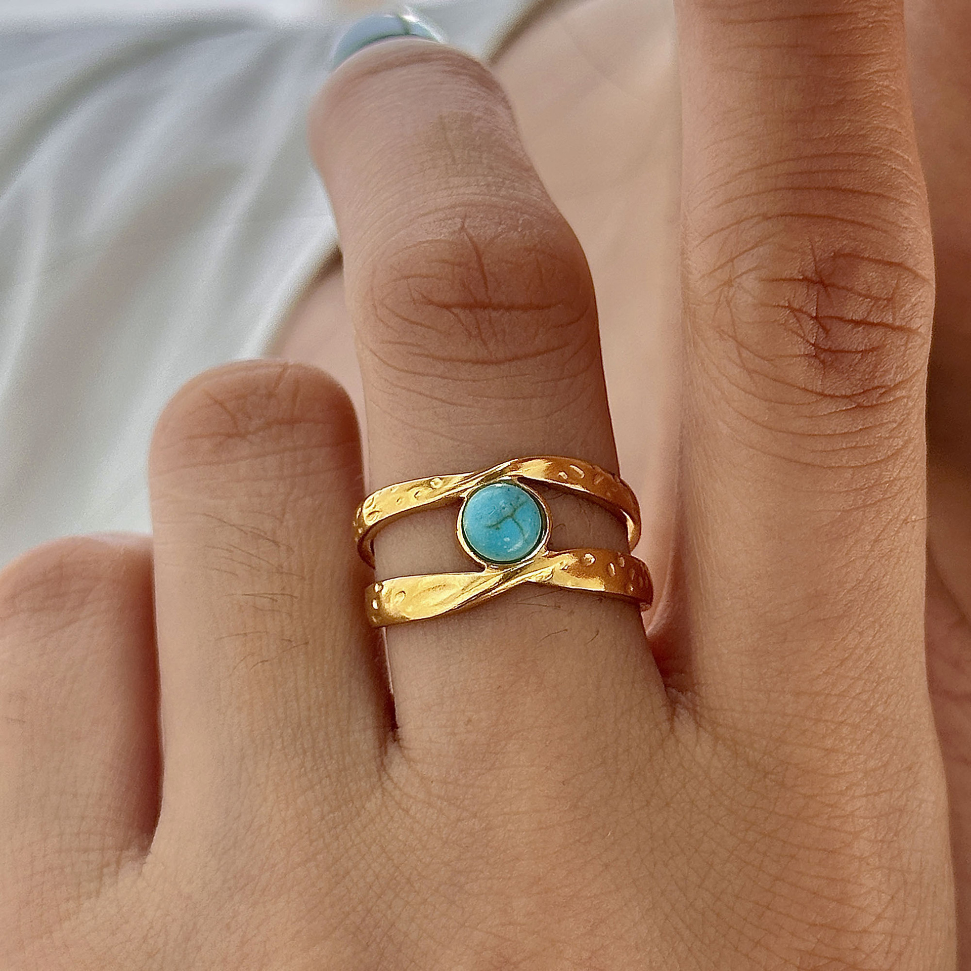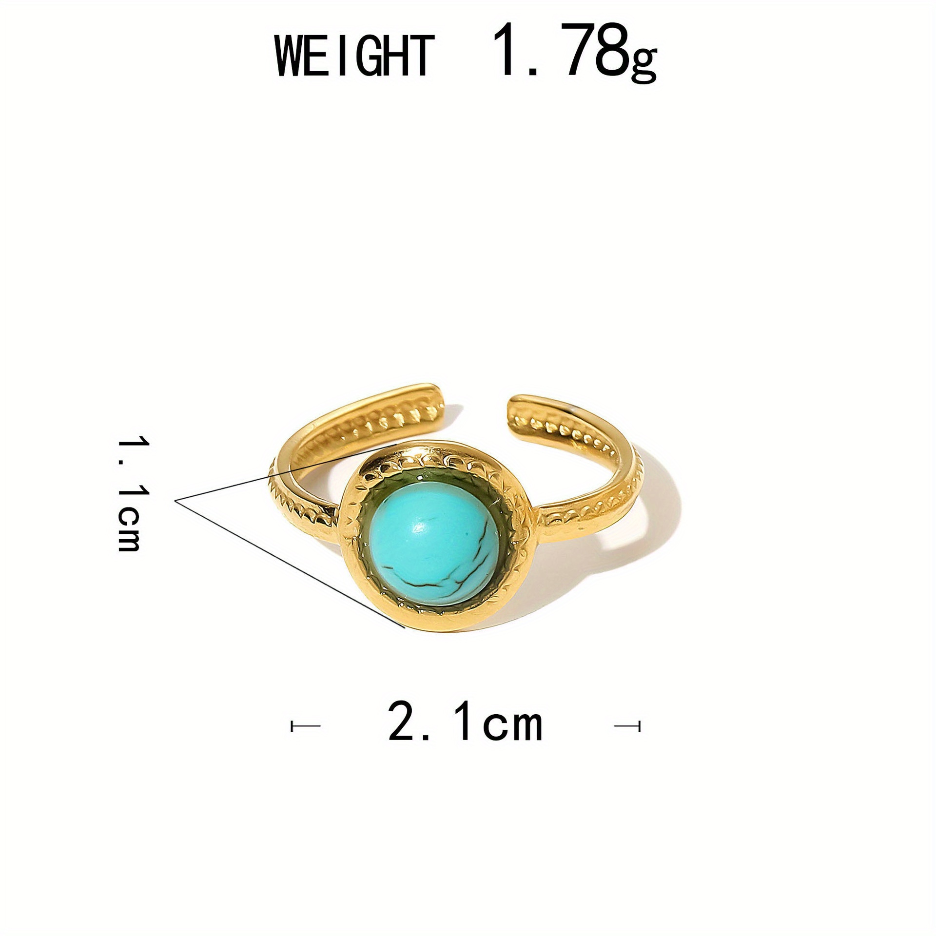 Vintage Bohemian Titanium Steel Ring Women's Light Luxury Premium Sense Oil Pressure Turquoise Open Ring