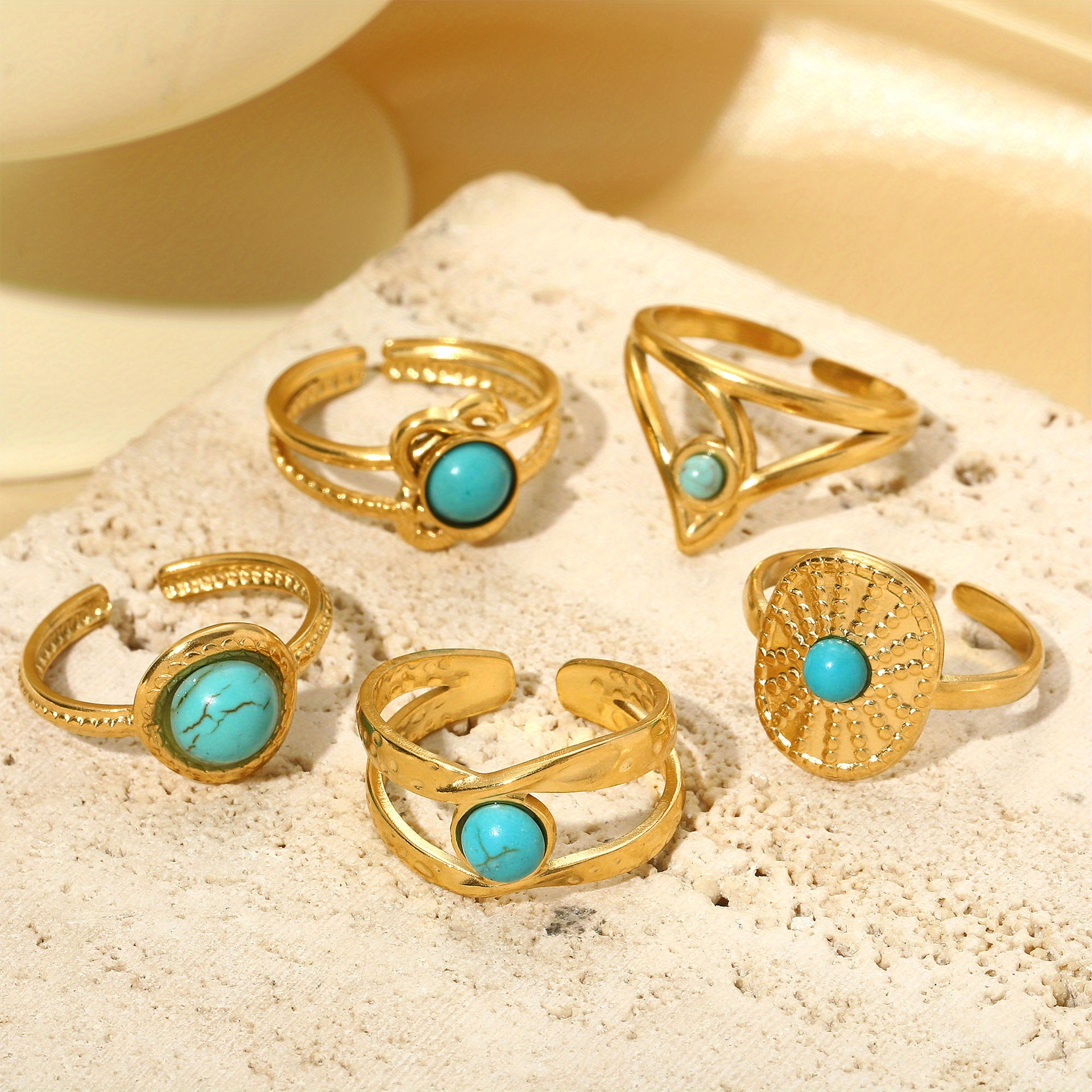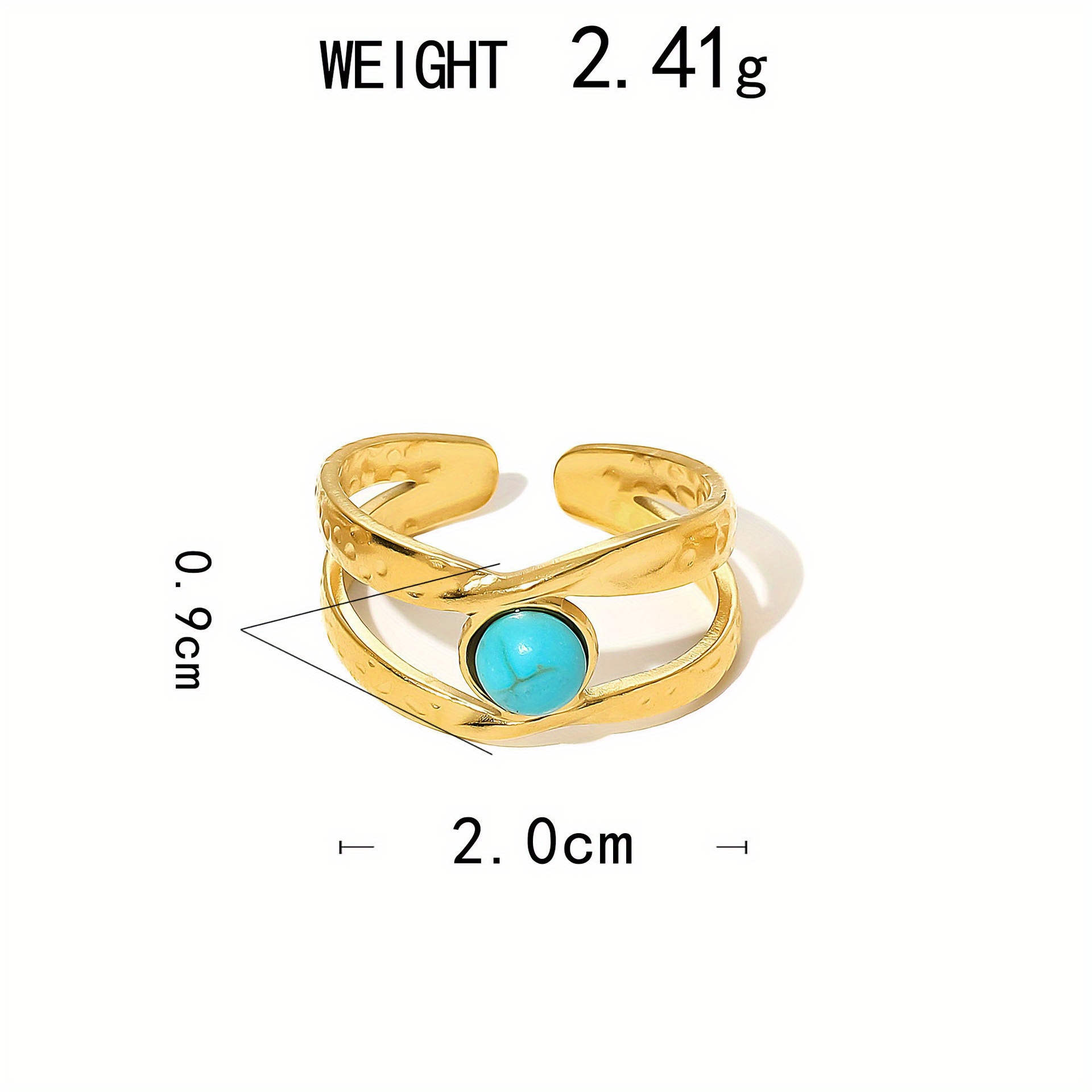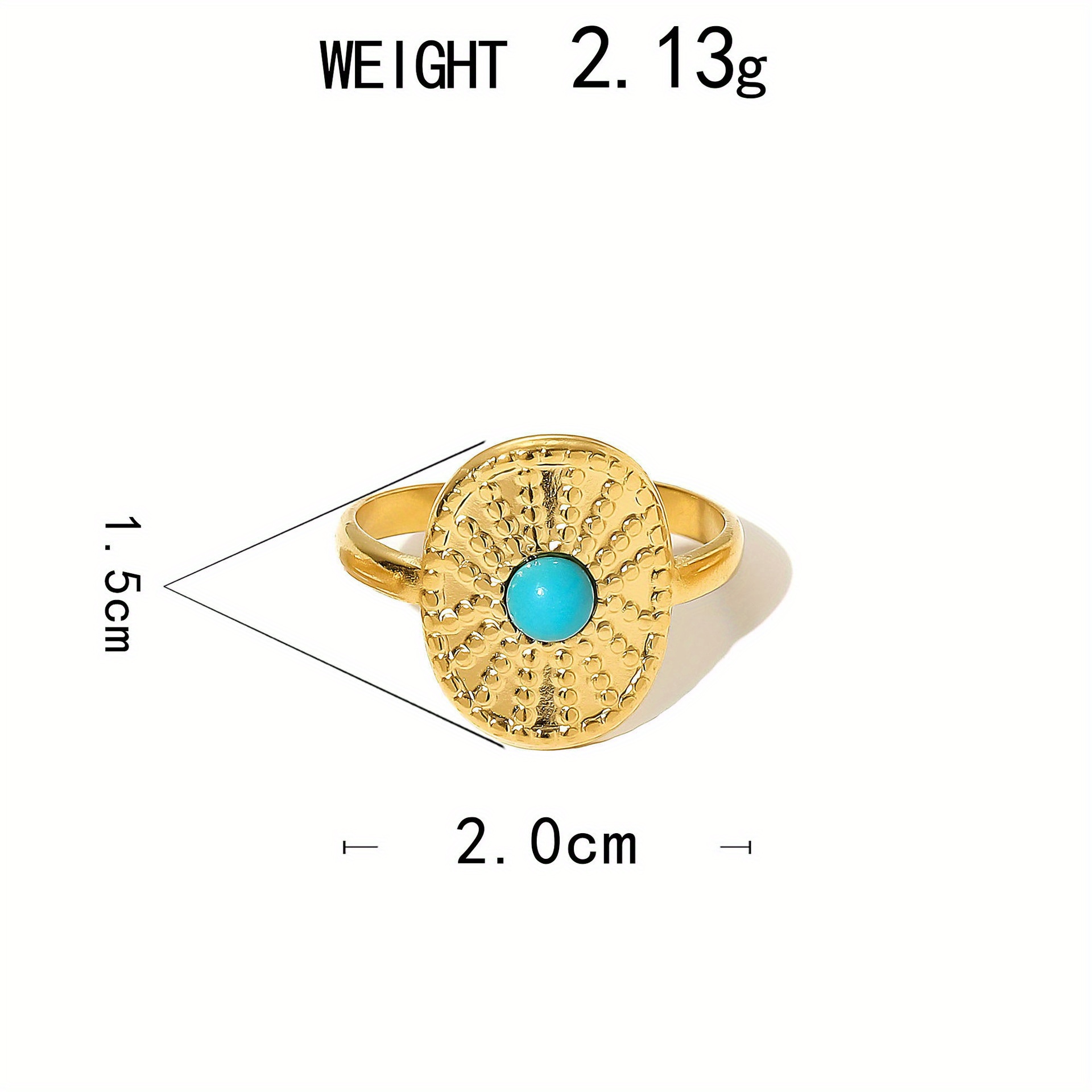 Vintage Bohemian Titanium Steel Ring Women's Light Luxury Premium Sense Oil Pressure Turquoise Open Ring