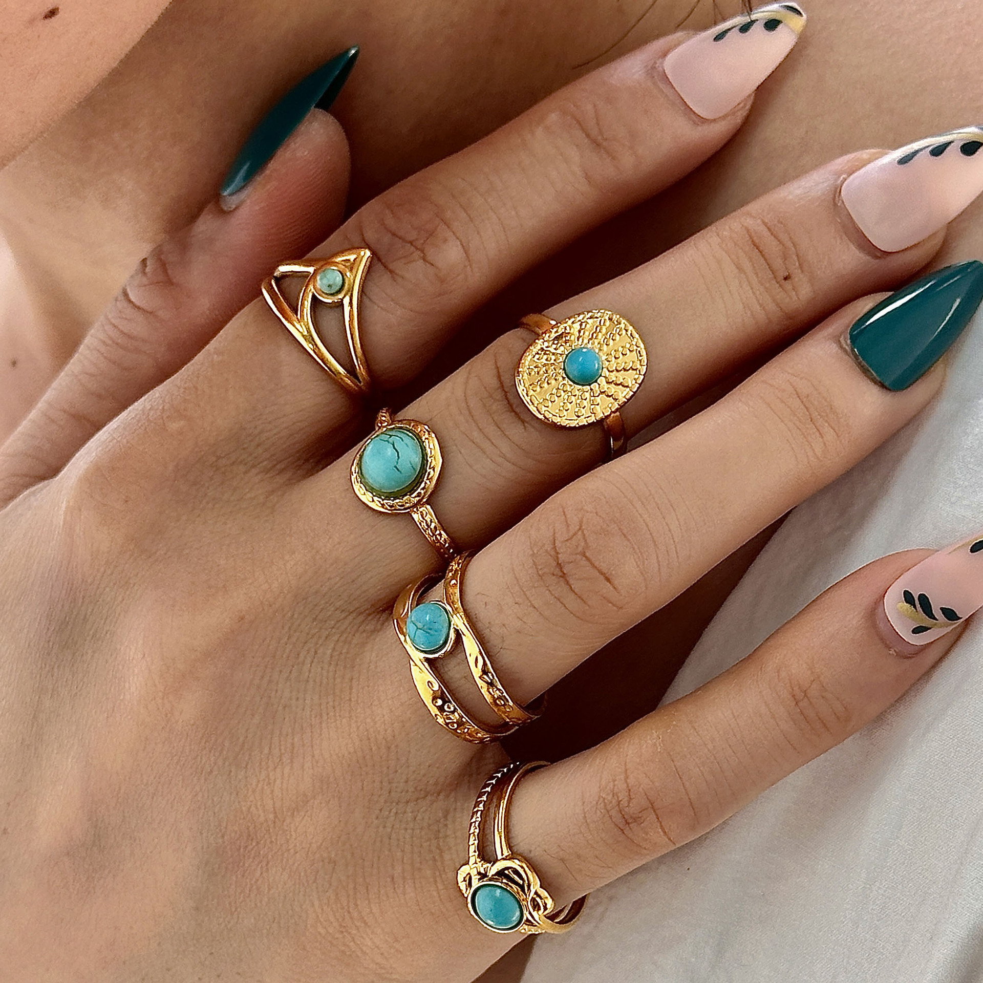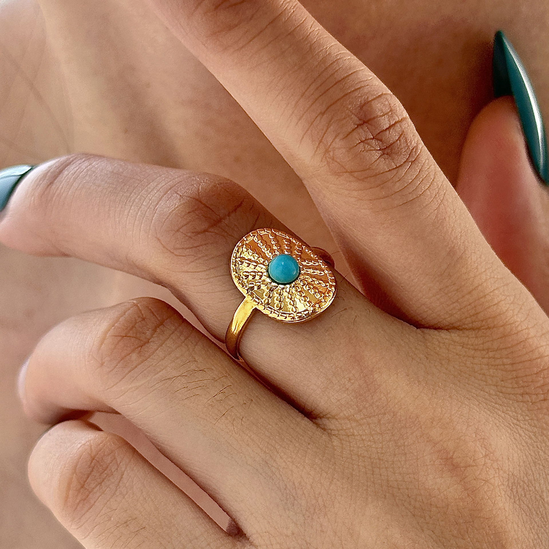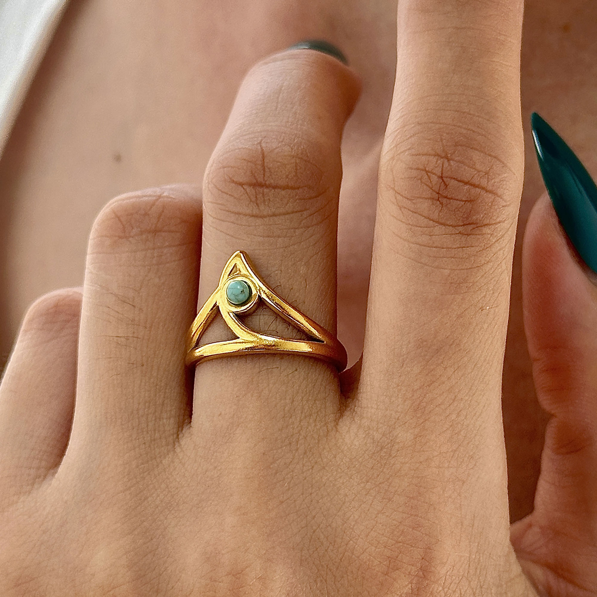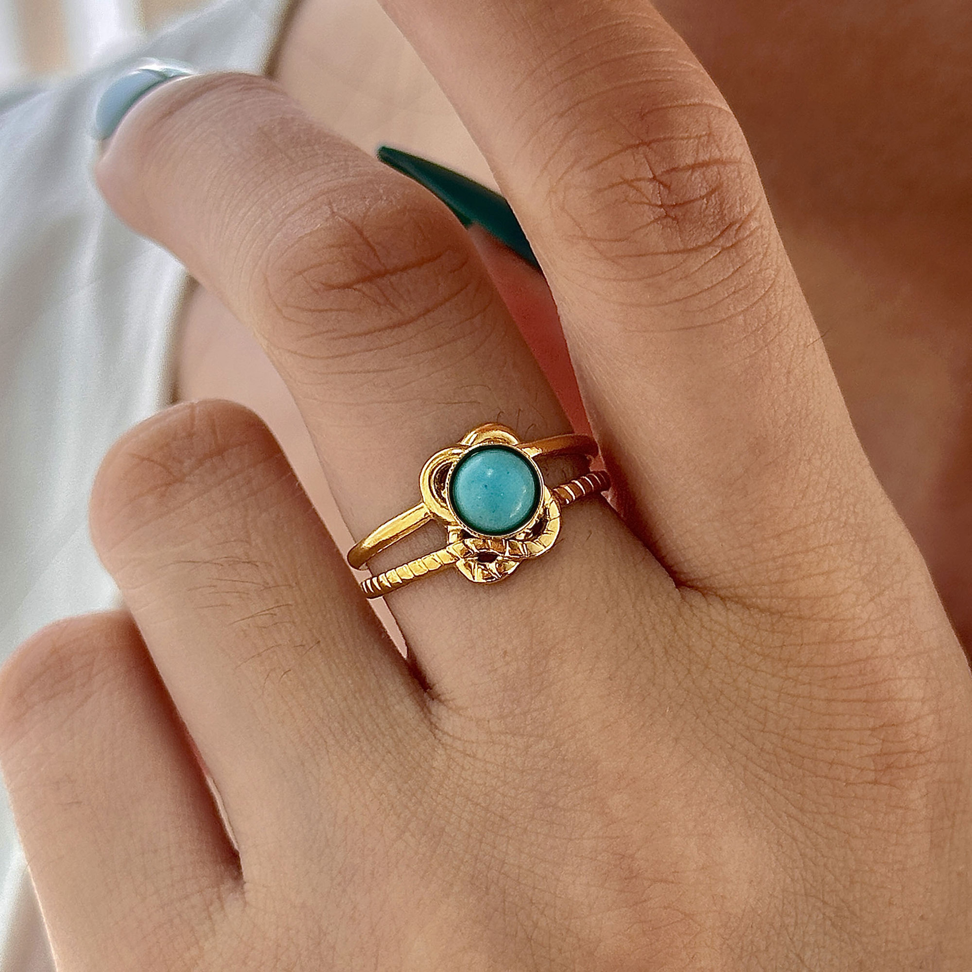 Vintage Bohemian Titanium Steel Ring Women's Light Luxury Premium Sense Oil Pressure Turquoise Open Ring
