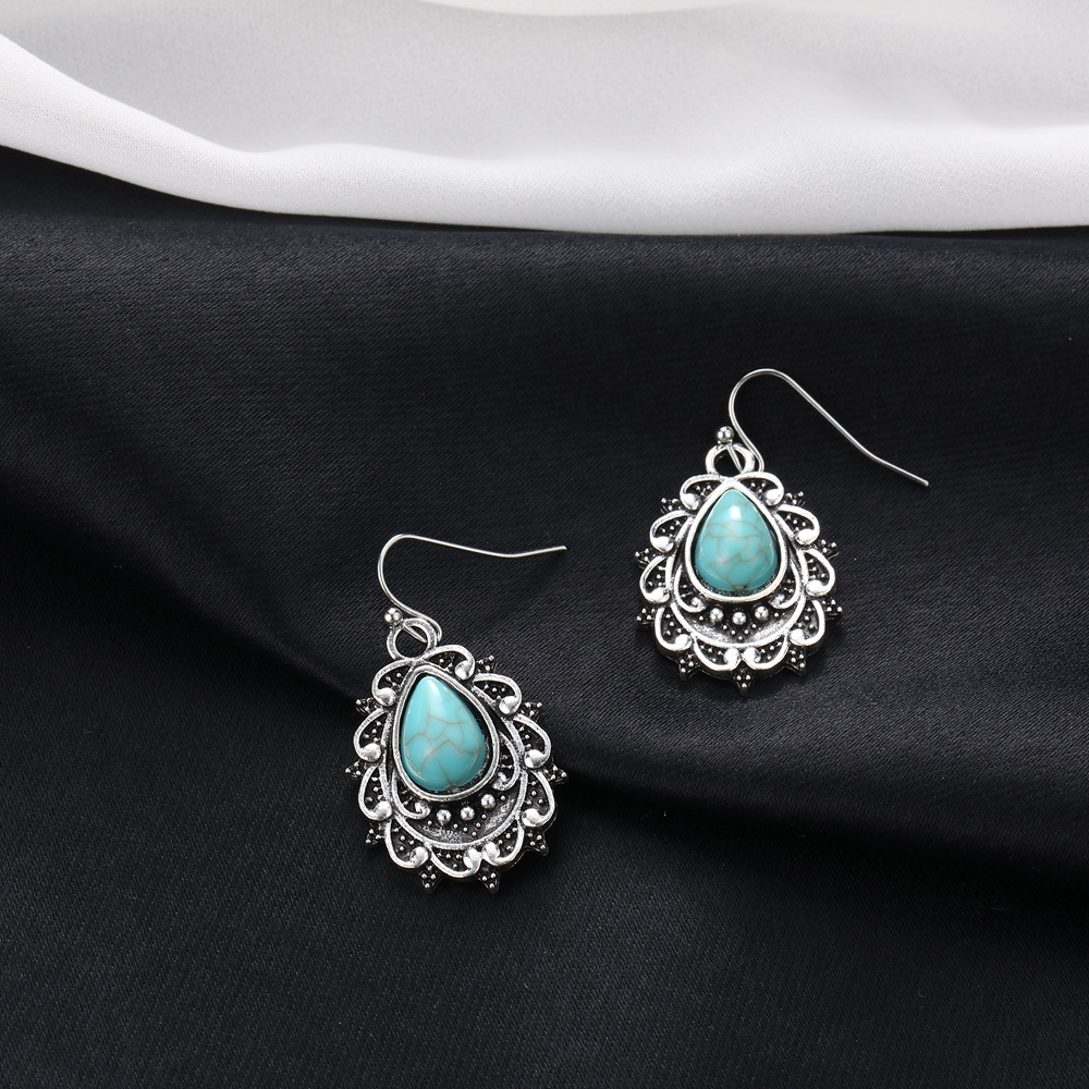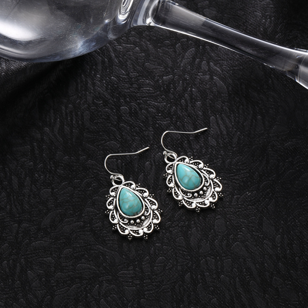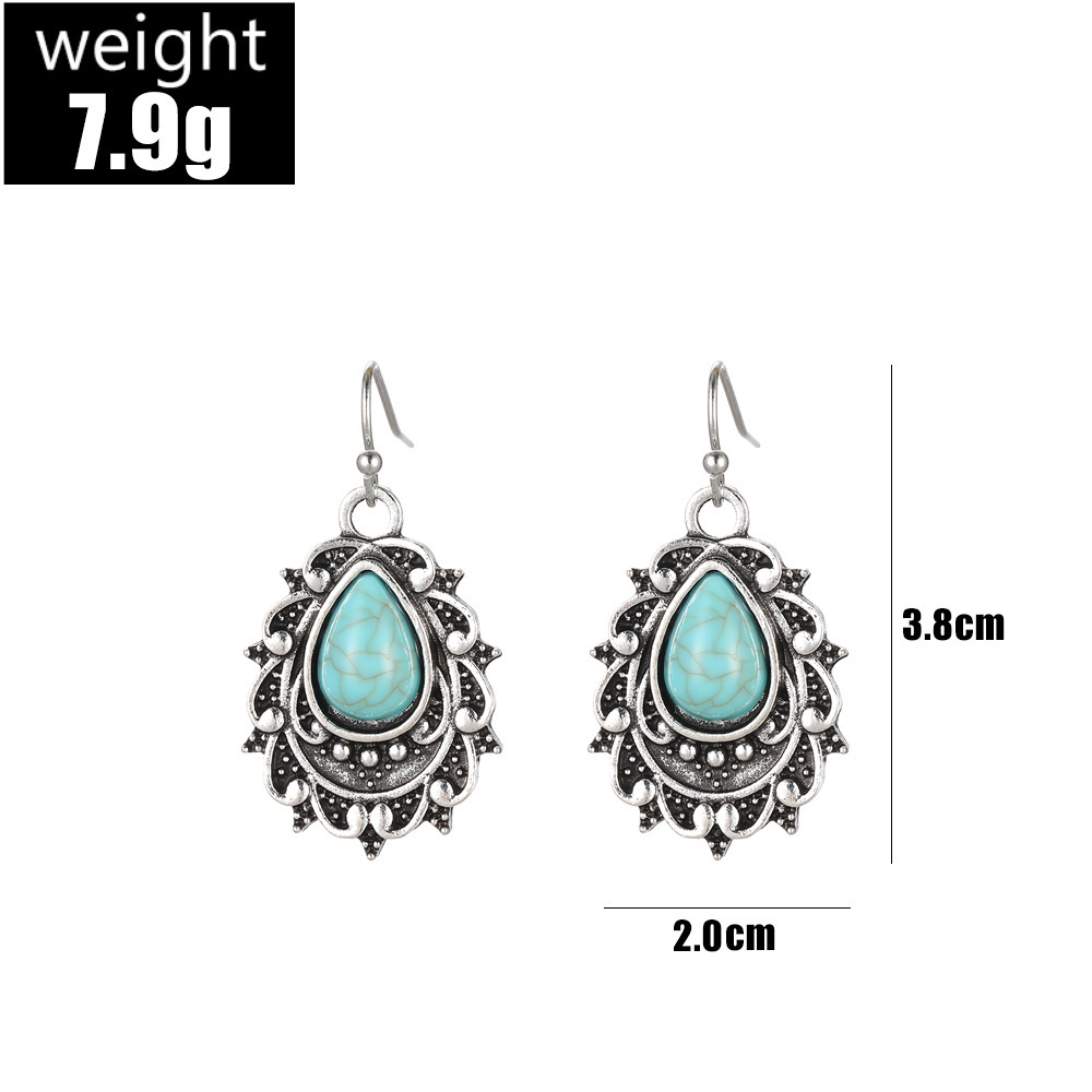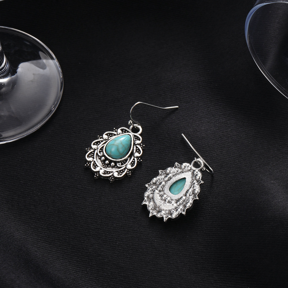 Vintage Bohemian Turquoise Drop-Shaped Carved Earrings Vintage Elegant Style Unique Ladies Earrings Jewelry