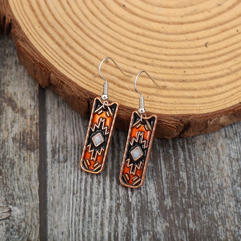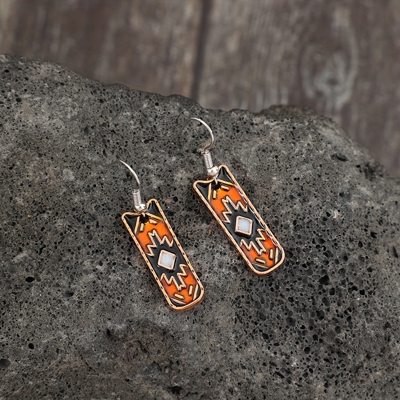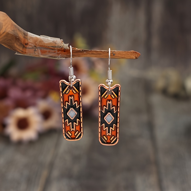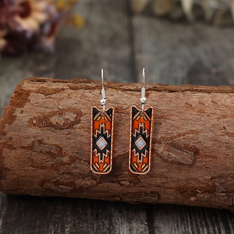 Vintage Bohemian Western Geometric Pendant Earrings - Zinc Alloy with Iron Stud Earrings, Rustic Bohemian Casual Wear, Bohemian Earrings