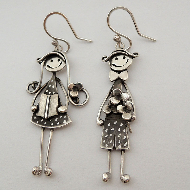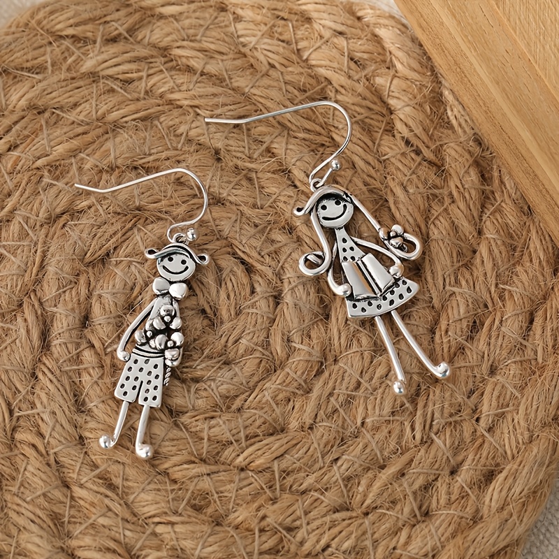 Vintage boy and girl pendant earrings with hook backs for pierced ears. beautiful gift for mom