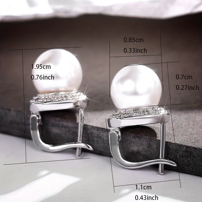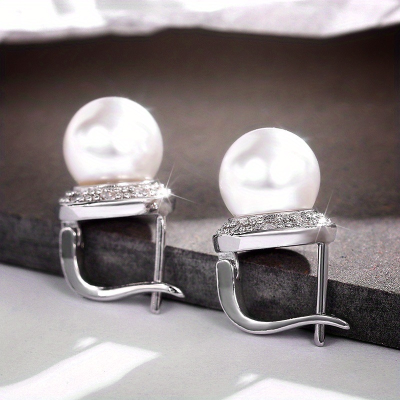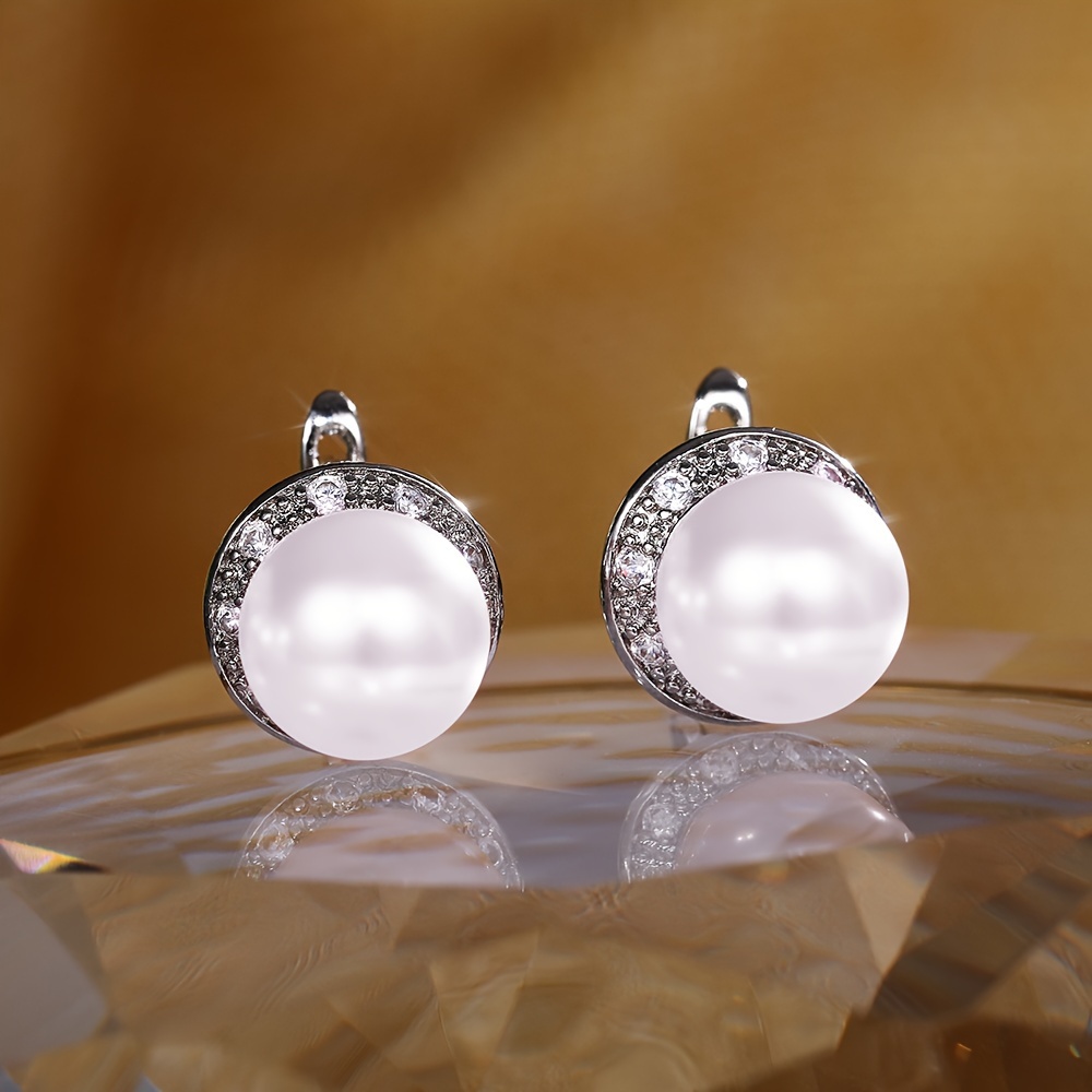 Vintage Classic Silver Plated Faux Pearl Huggie Ladies Anniversary Party Jewelry Gift