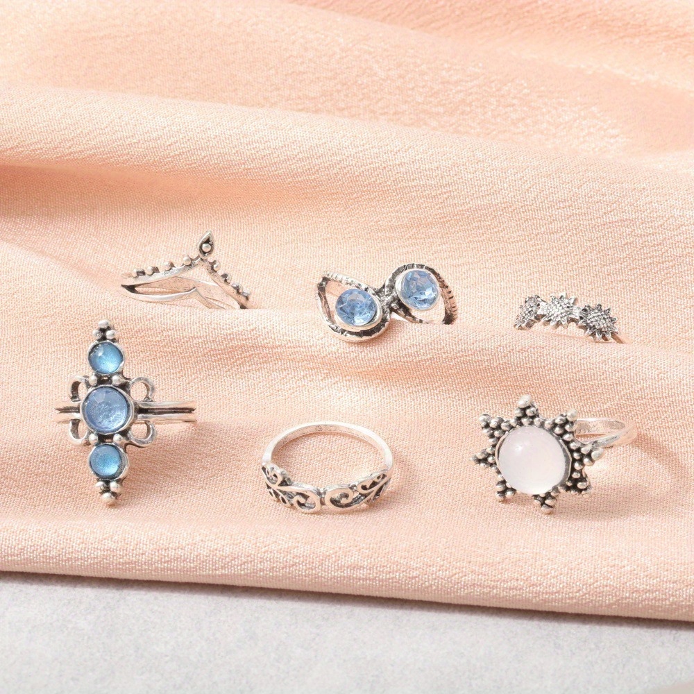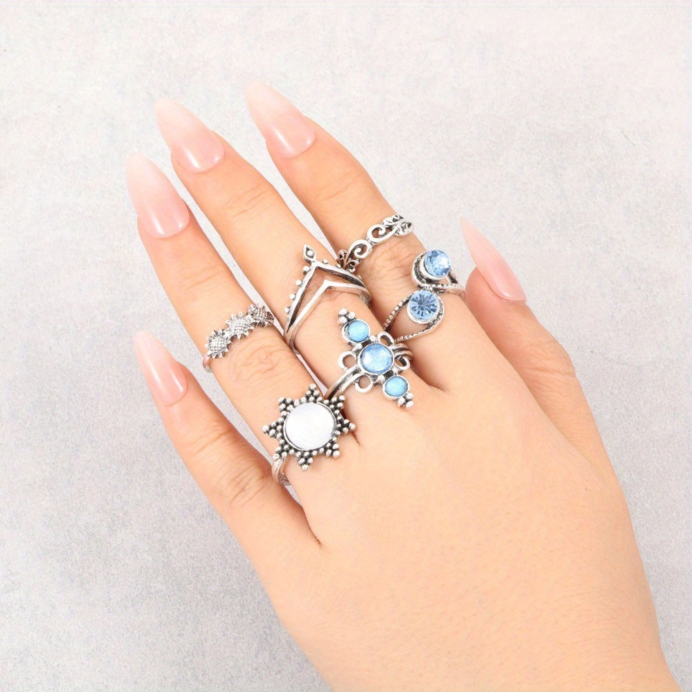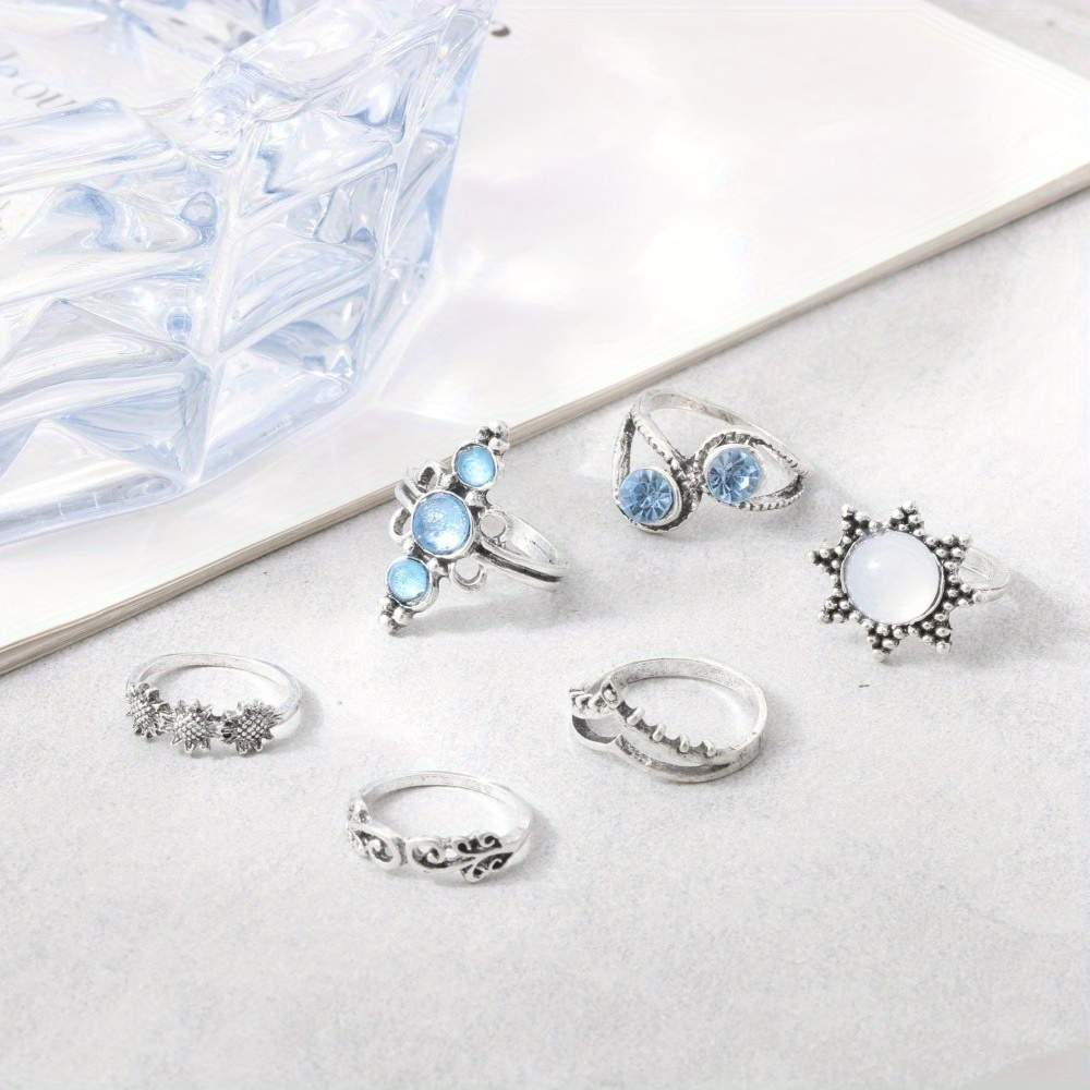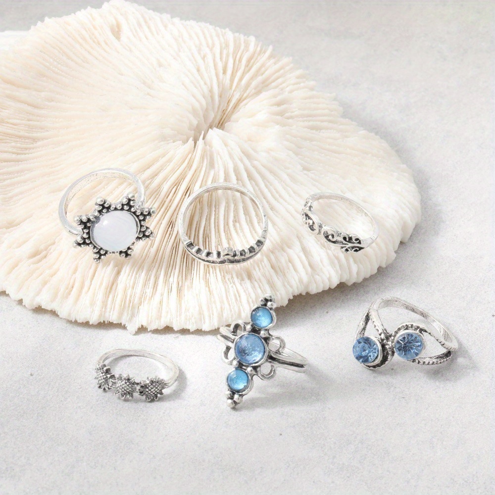 Vintage Diamond Engraved Crown Starry Sky Gemstone, Sunflower 6-piece Combination Set Ring