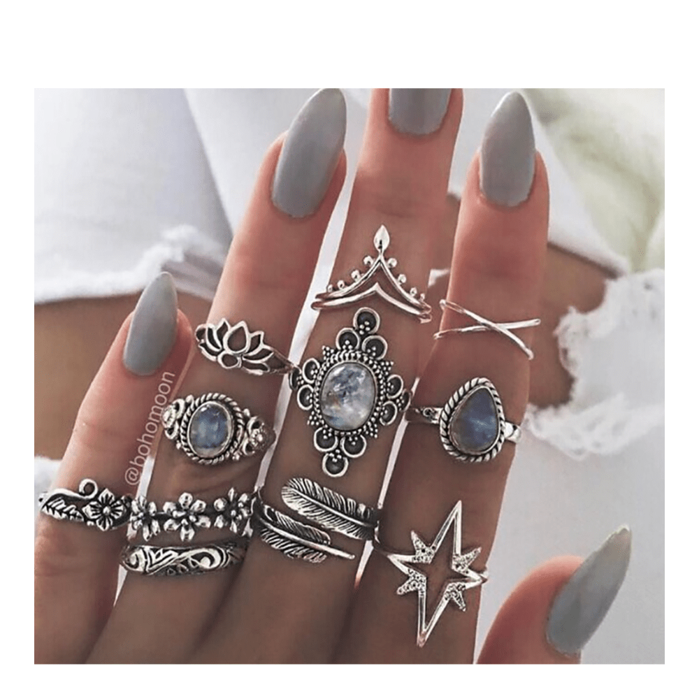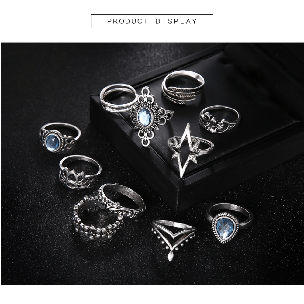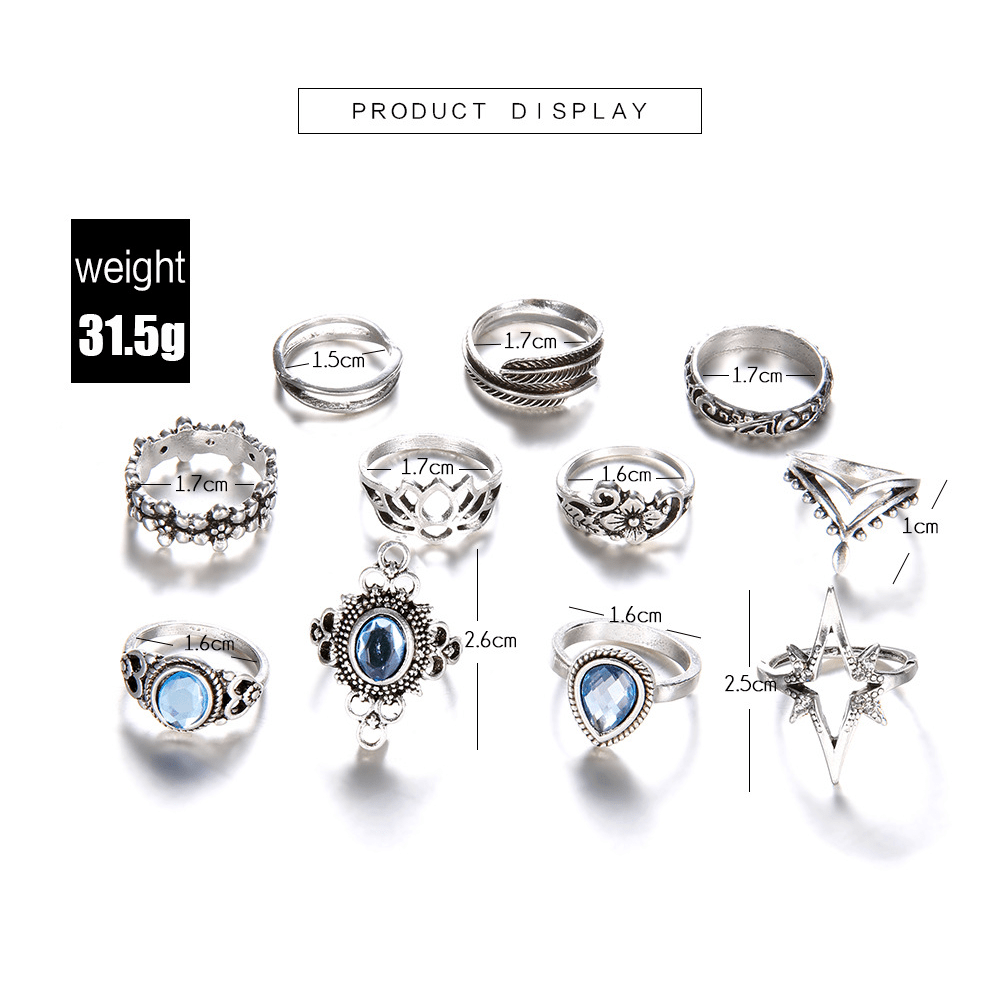 Vintage Diamond Engraved Starry Sky Gemstone 11-piece Combination Set Ring