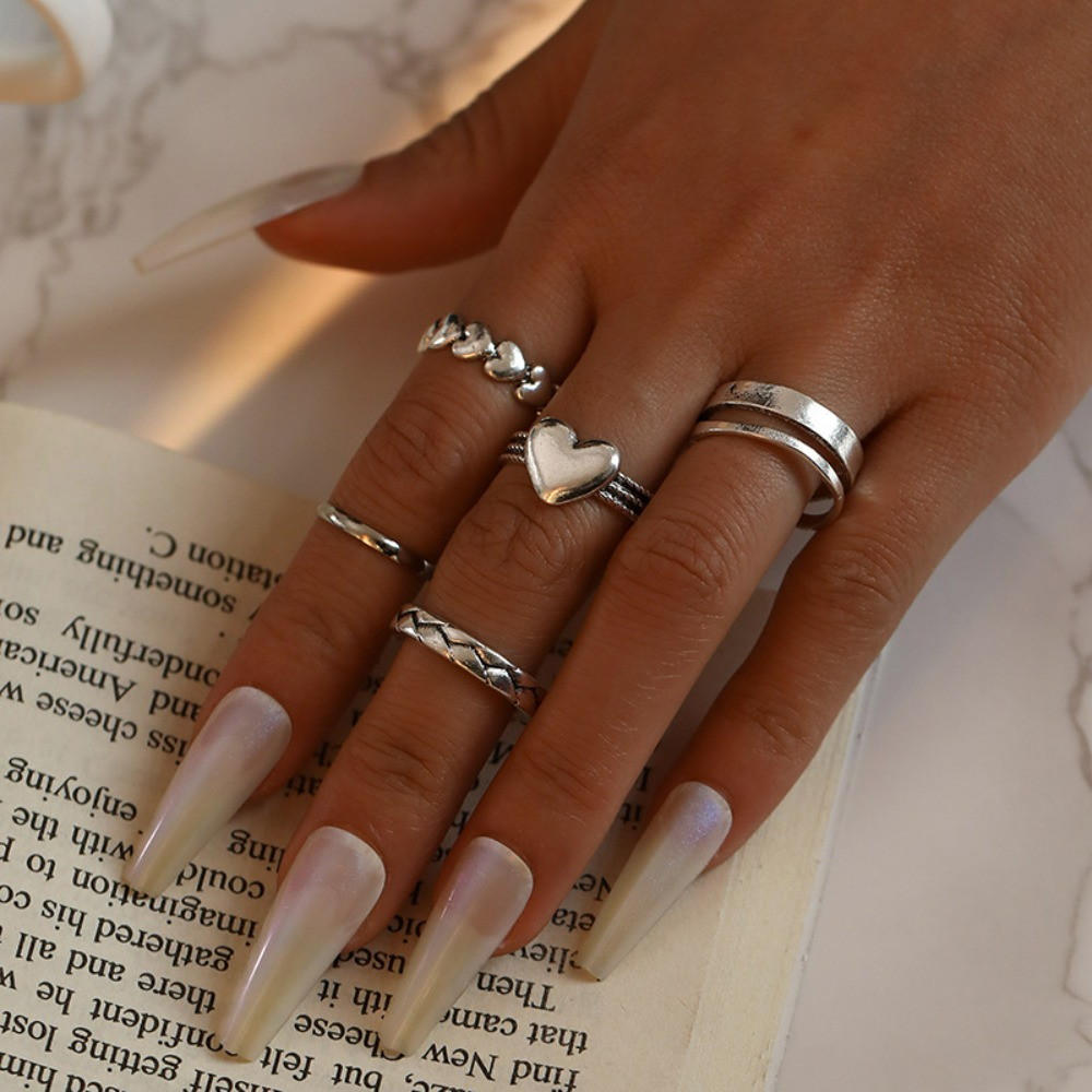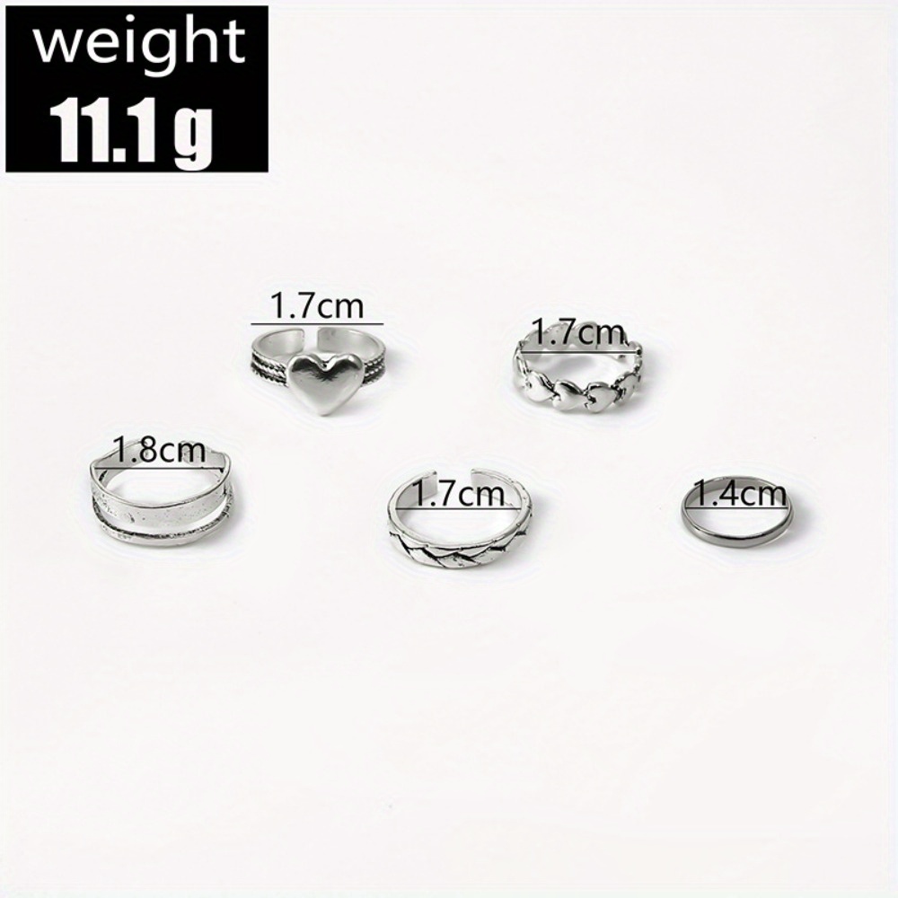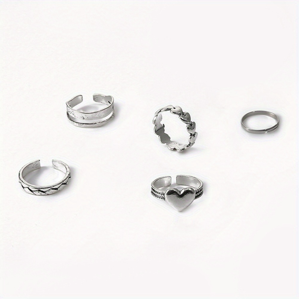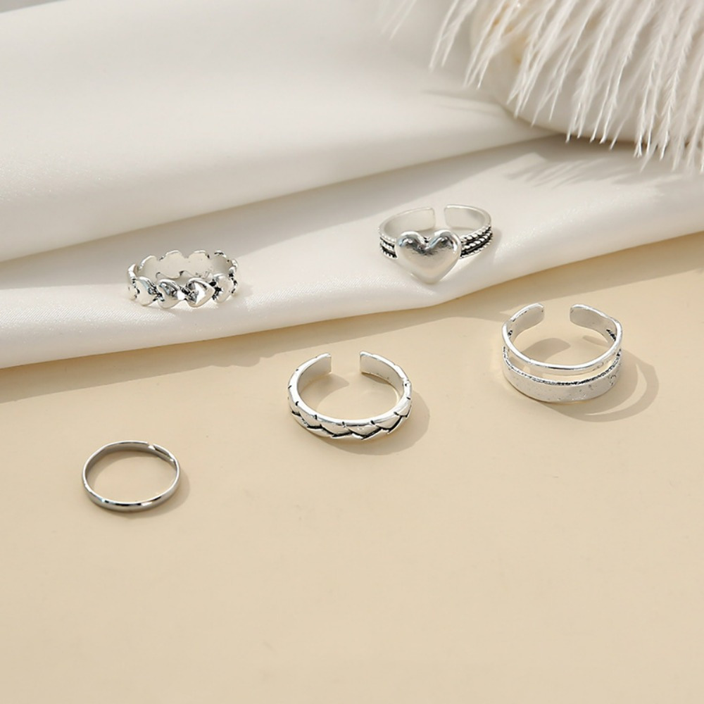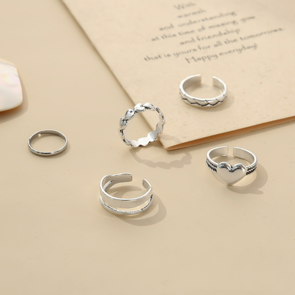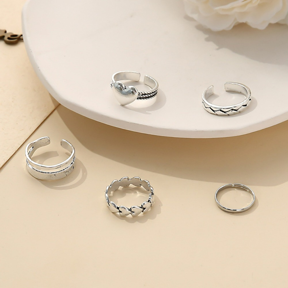 Vintage double-layer opening, cold wind love combination 5-piece ring