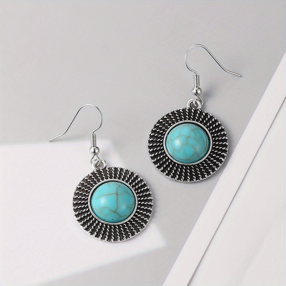 Vintage Earrings Fashion Personality Earrings Turquoise Round Earrings Ear Hooks