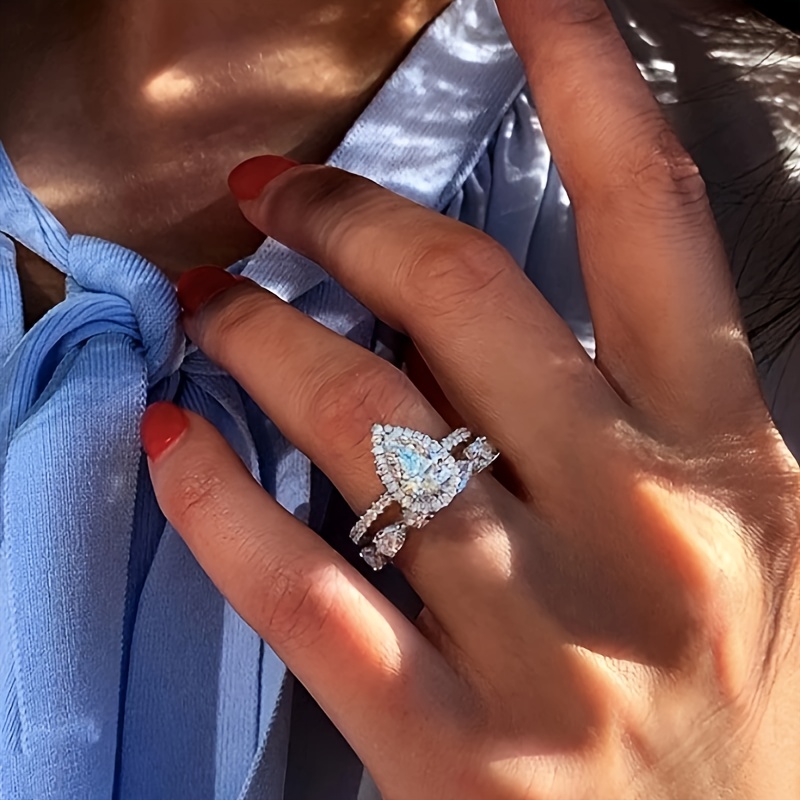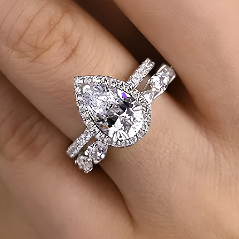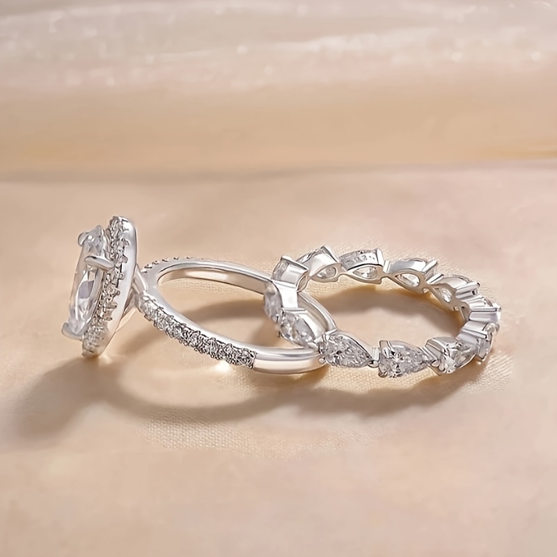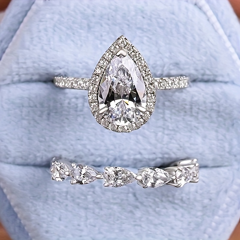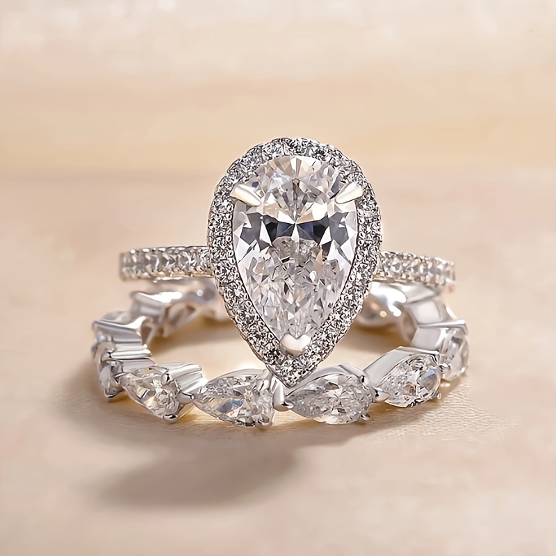 Vintage Elegant Bridal Ring Set with Pear Cut Cubic Zirconia and Copper Strap, Unplated, Zirconia Laid, Perfect for Weddings and Engagements - 2 Piece Set