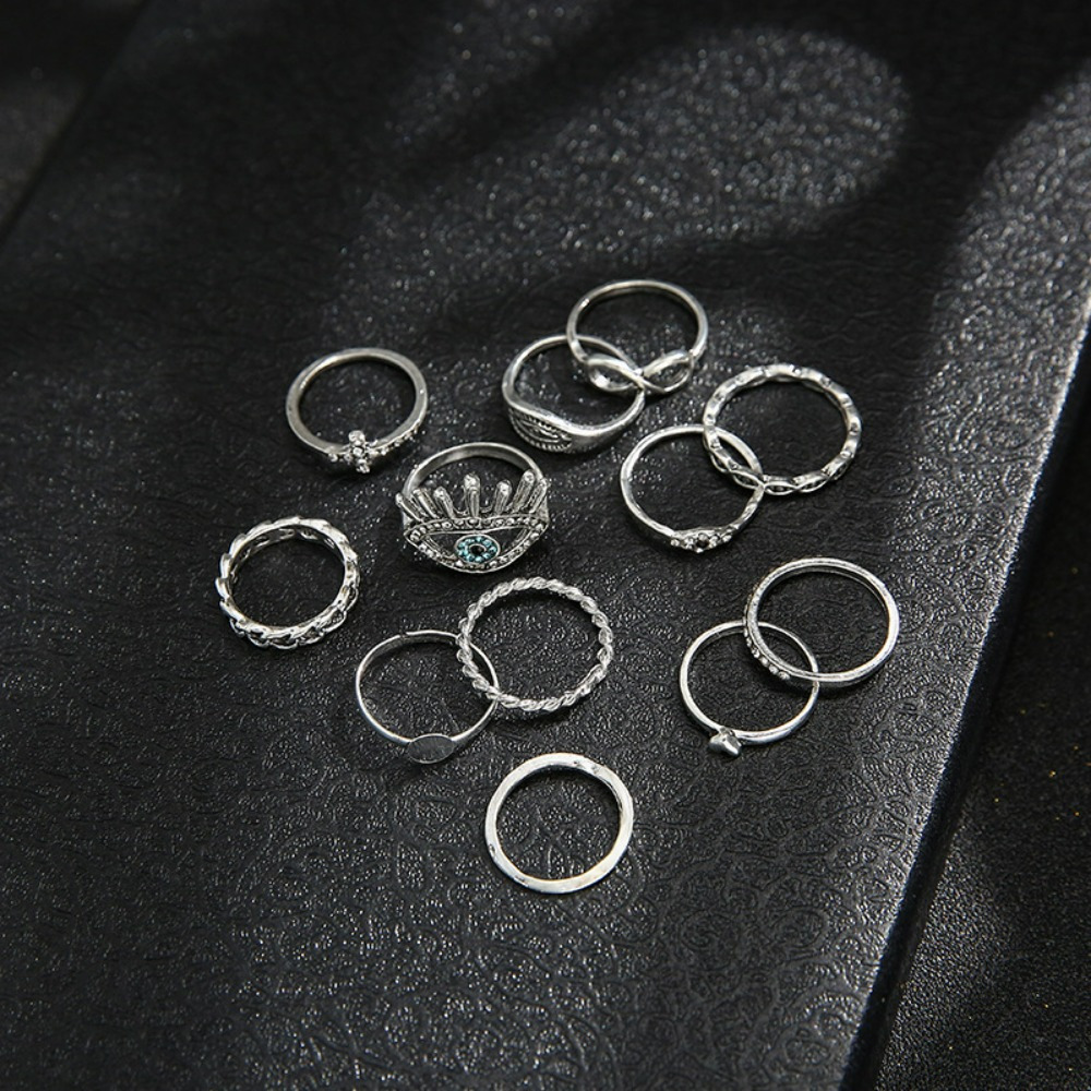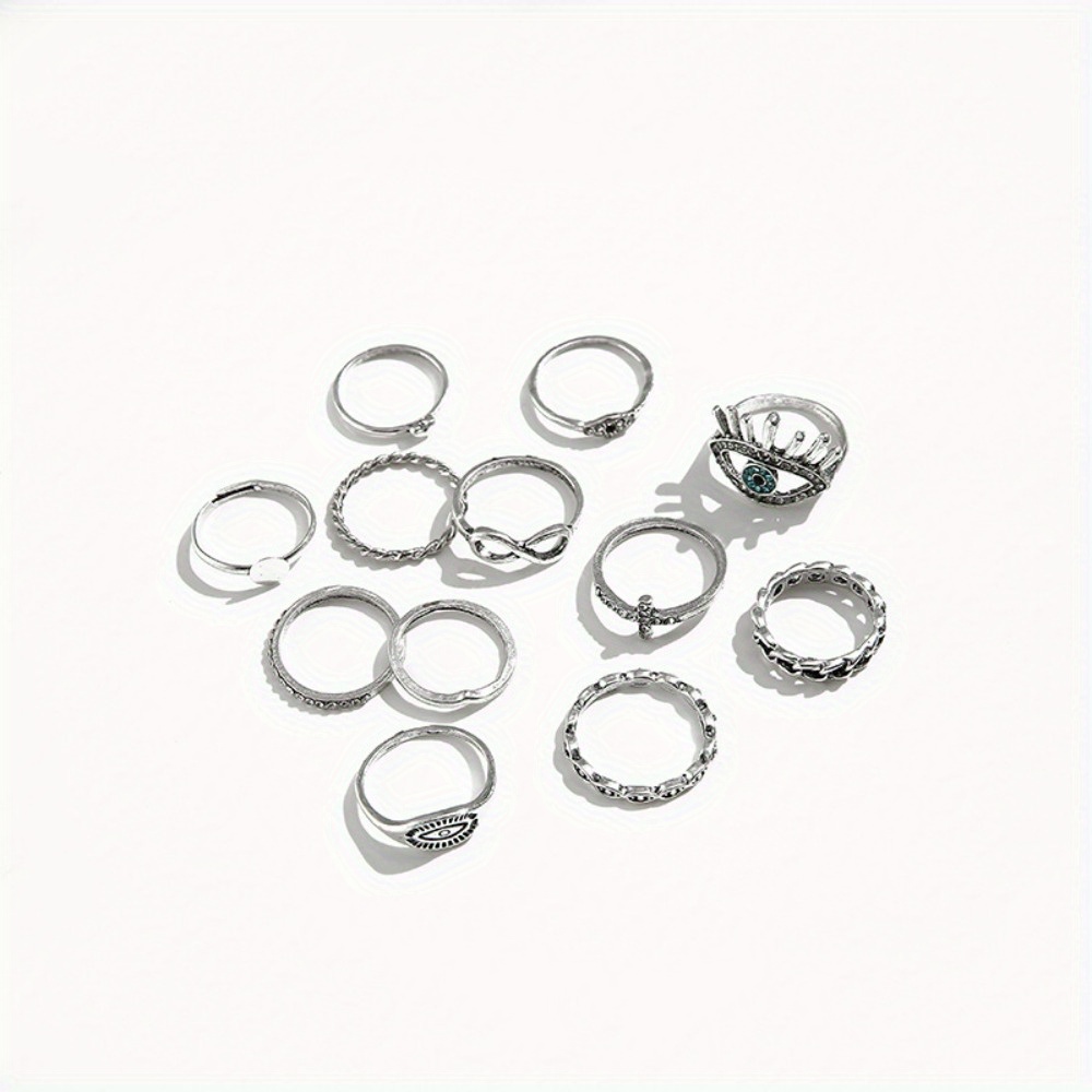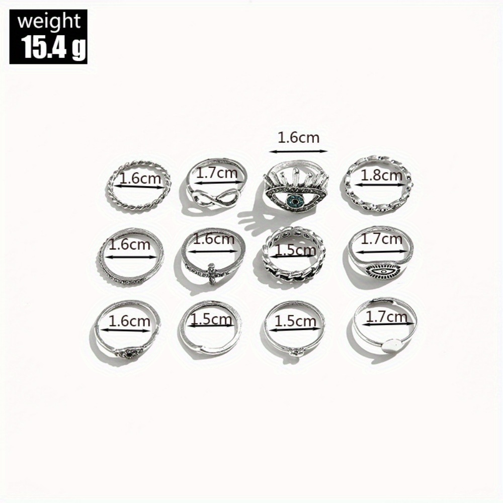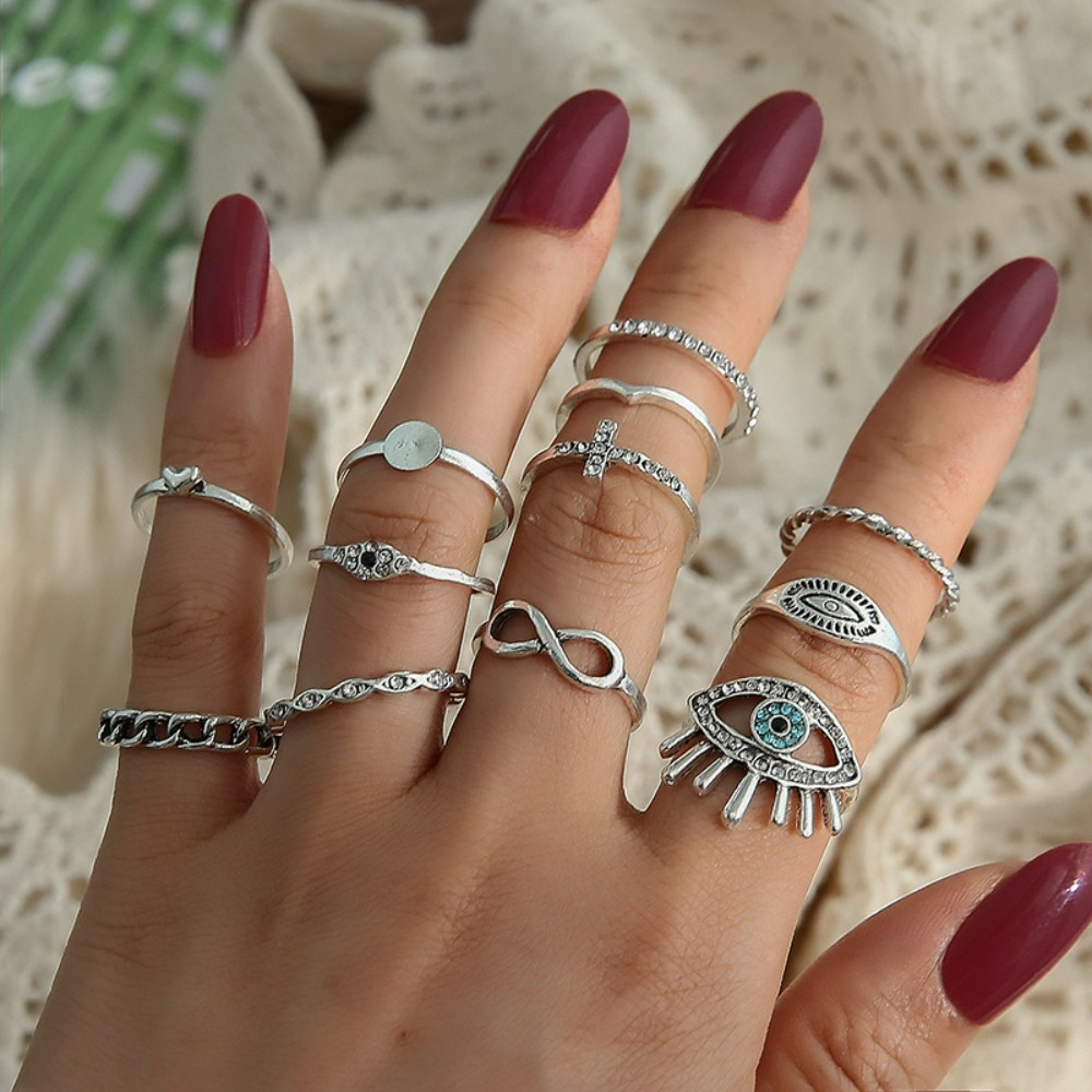 Vintage eye 8 character full diamond cross 12 combination set joint ring