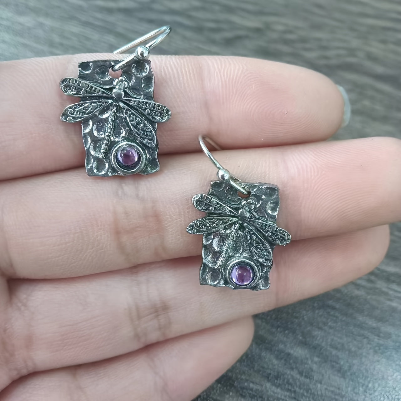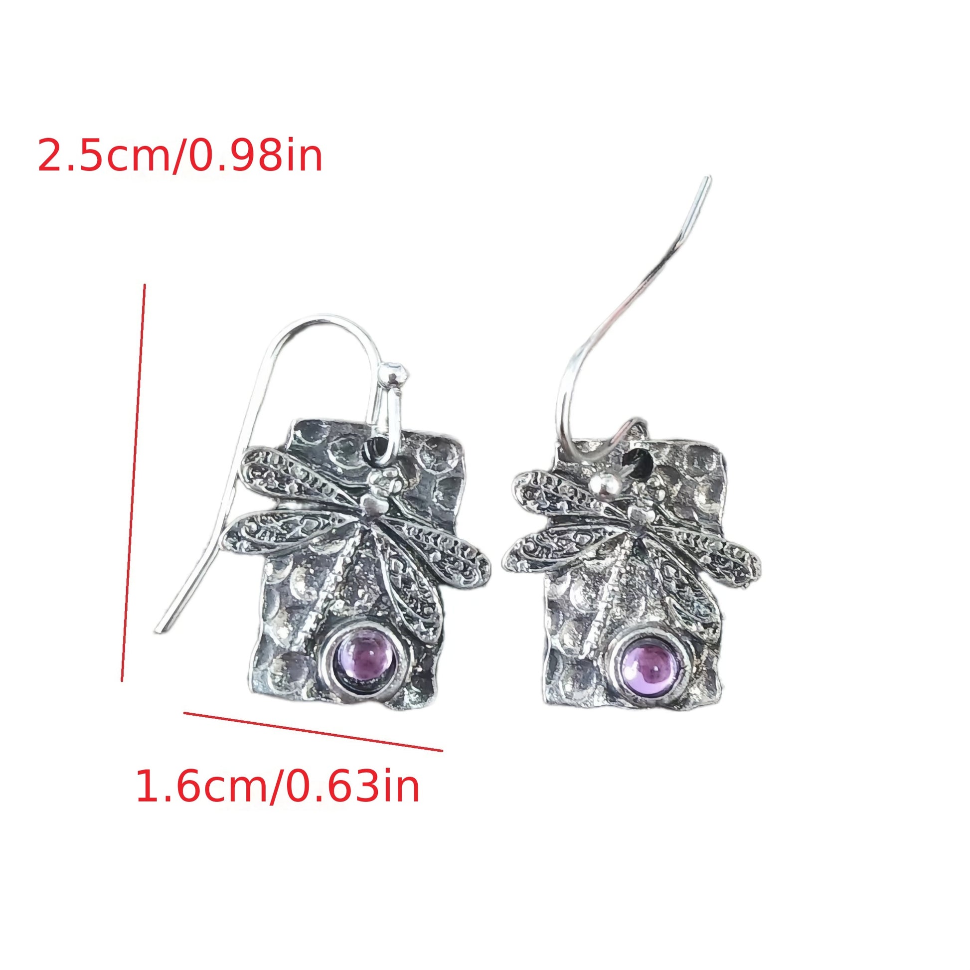 Vintage geometric square dragonfly earrings with purple resin accents - alloy and iron, perfect for casual wear, dragonfly jewelry