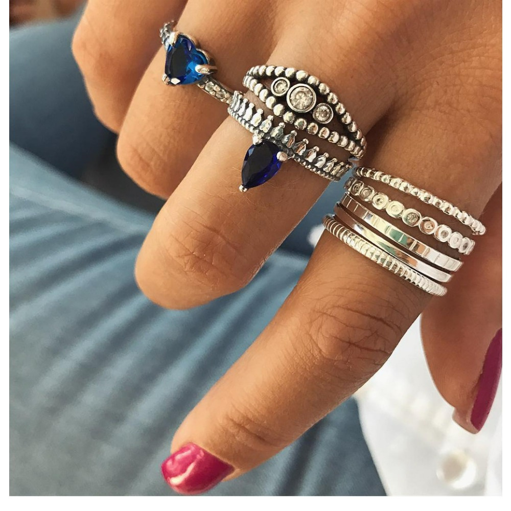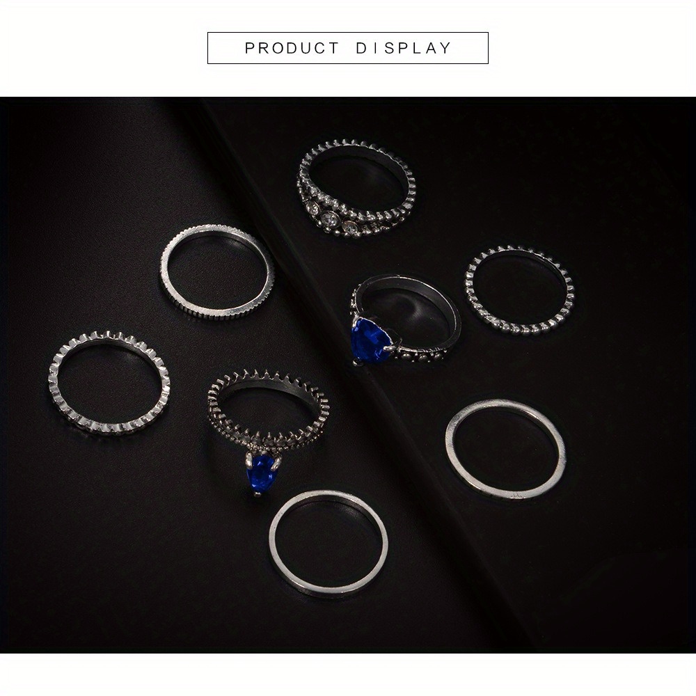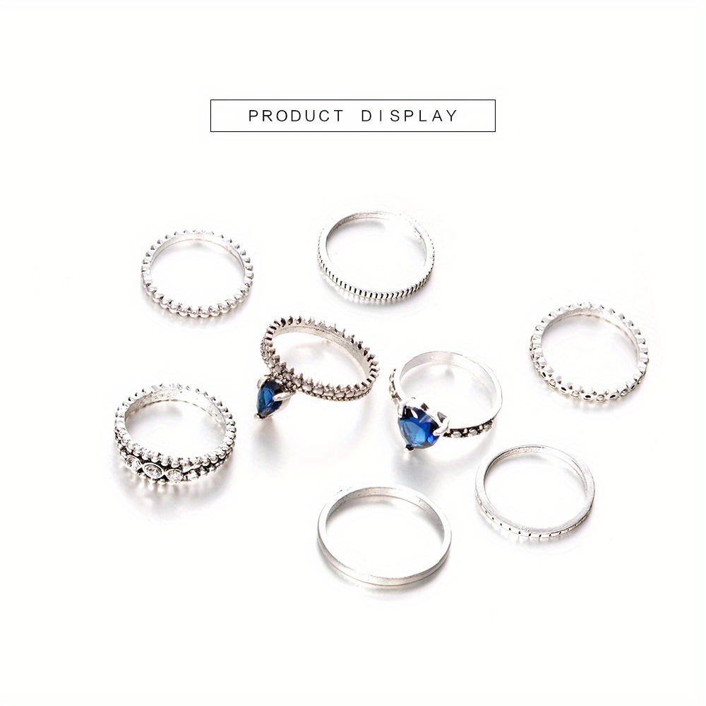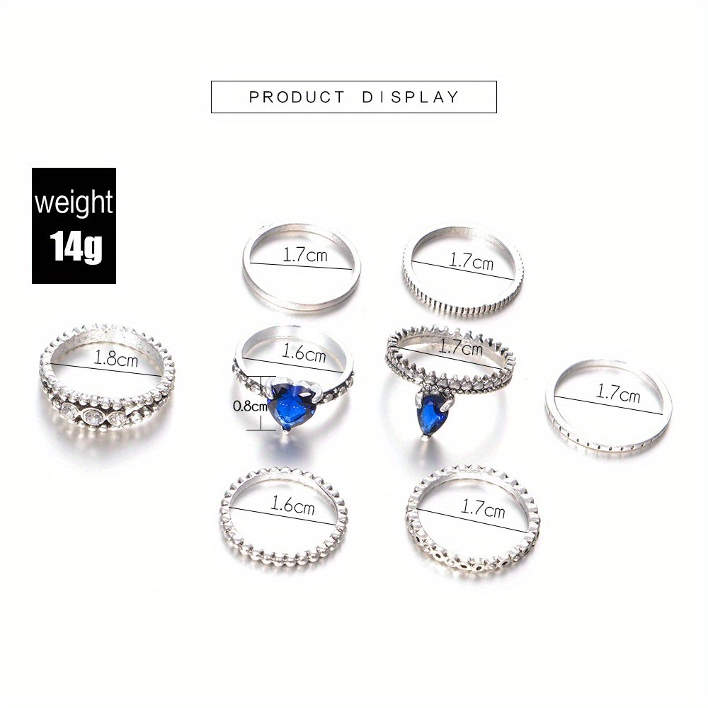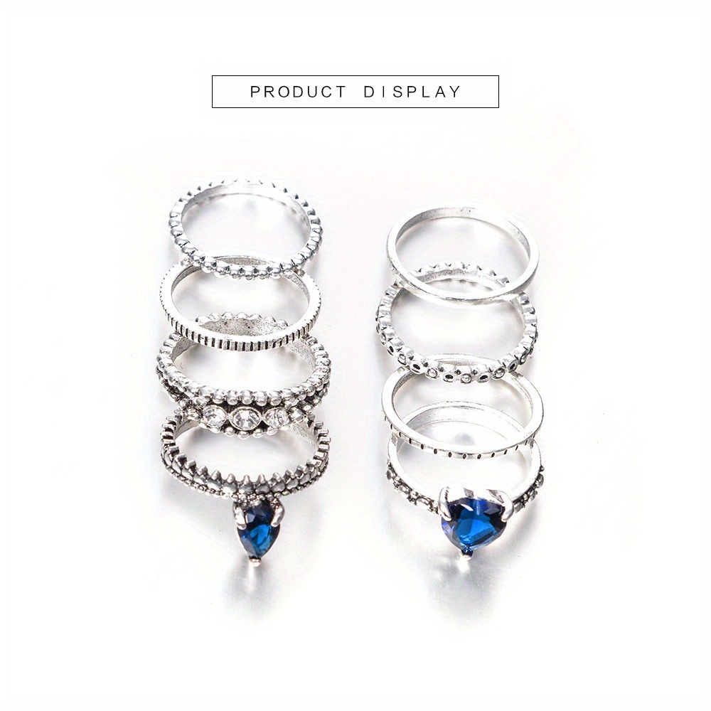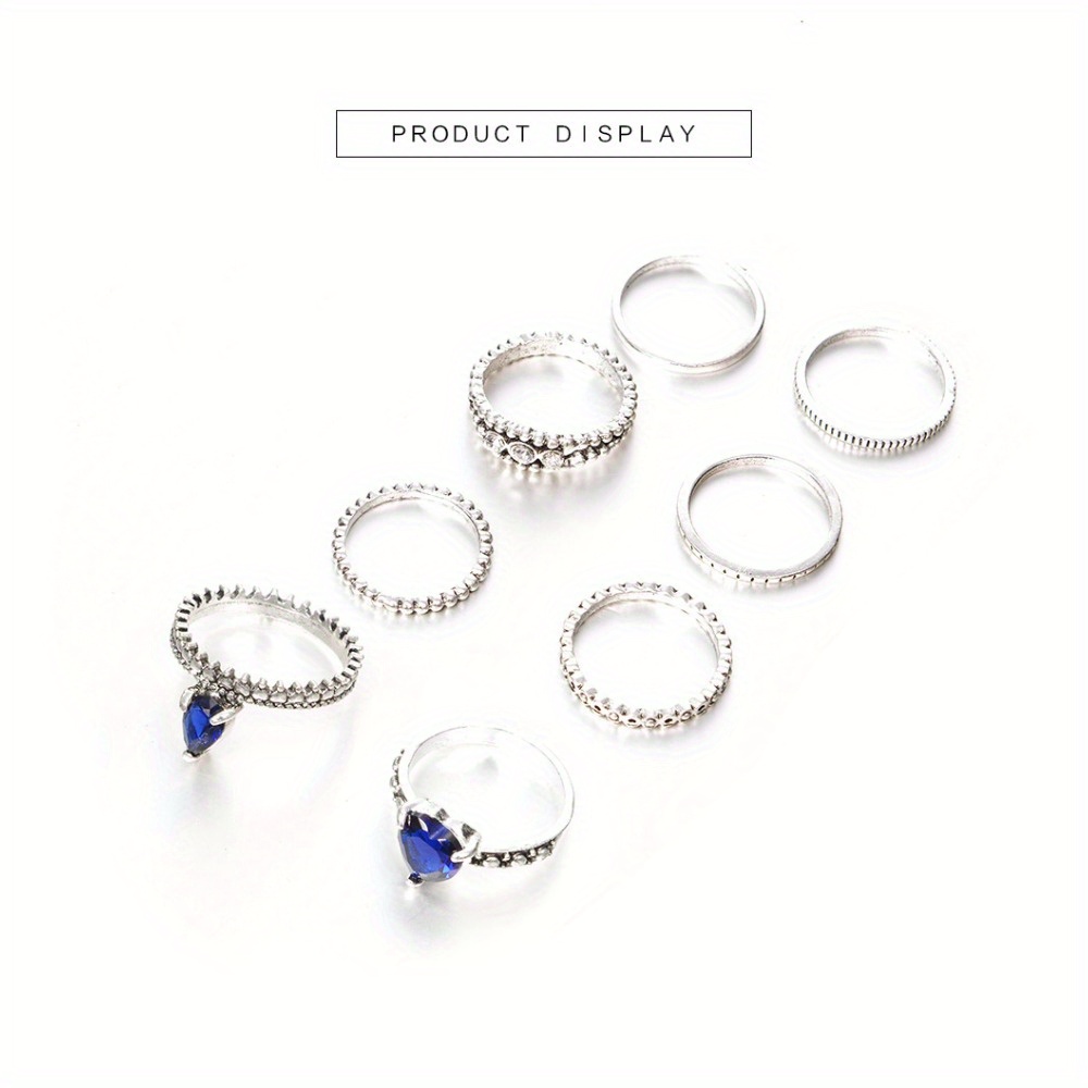 Vintage joint ring clip peach heart blue zircon 8-piece ring set