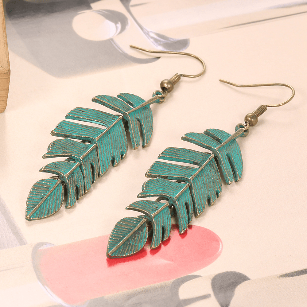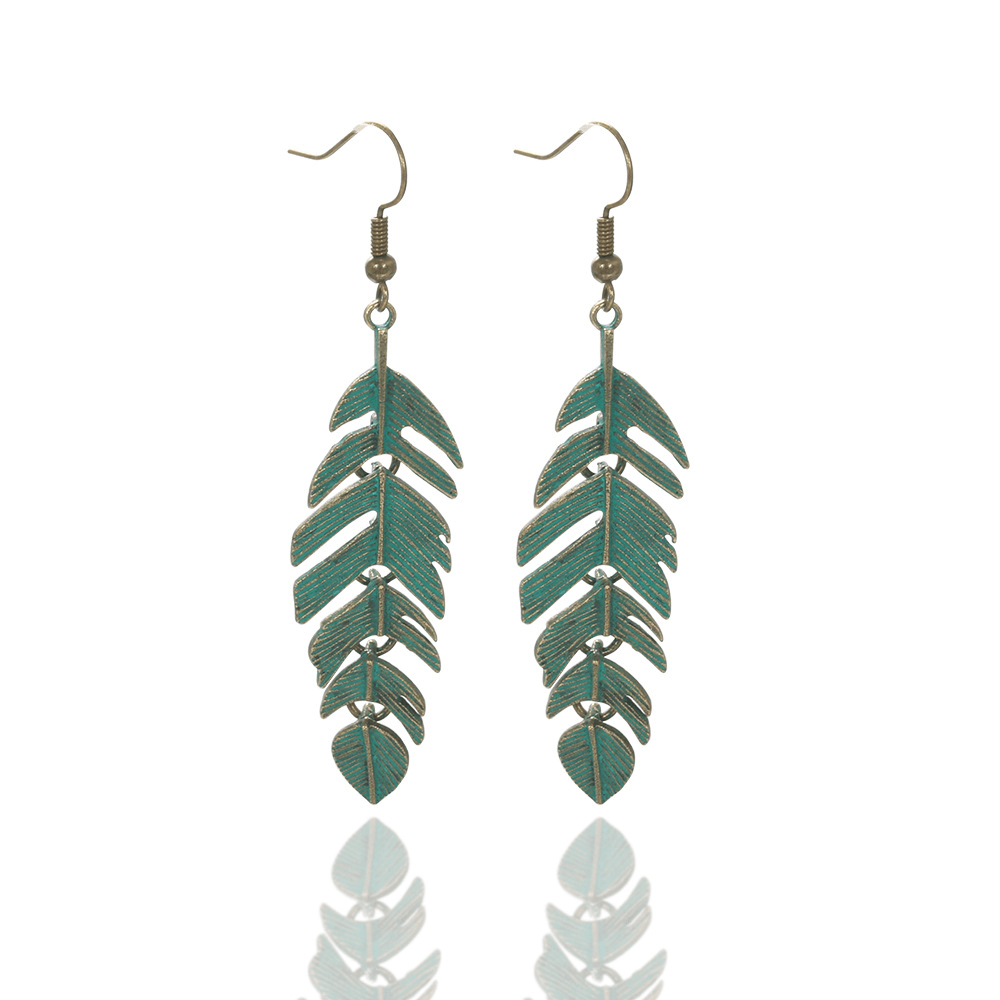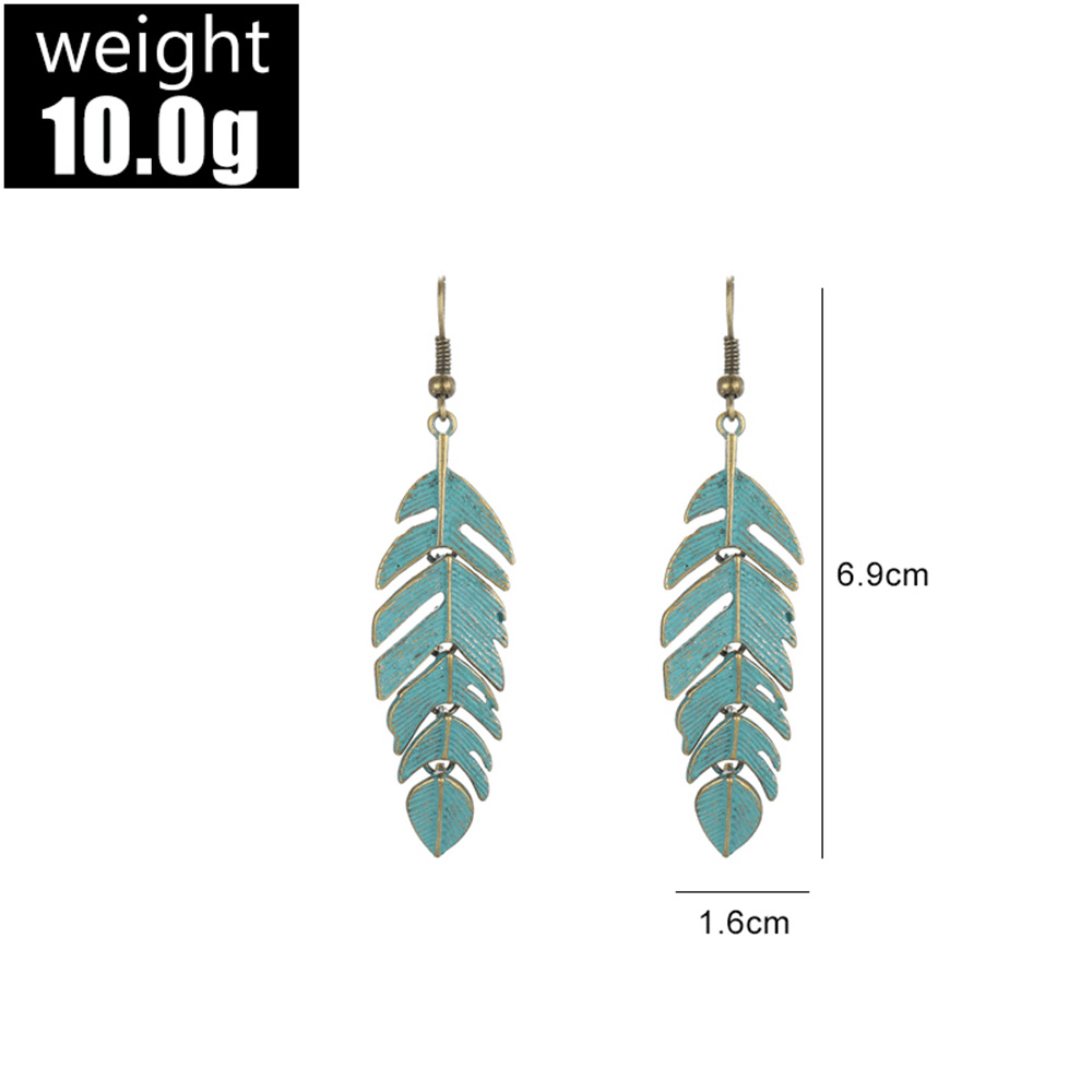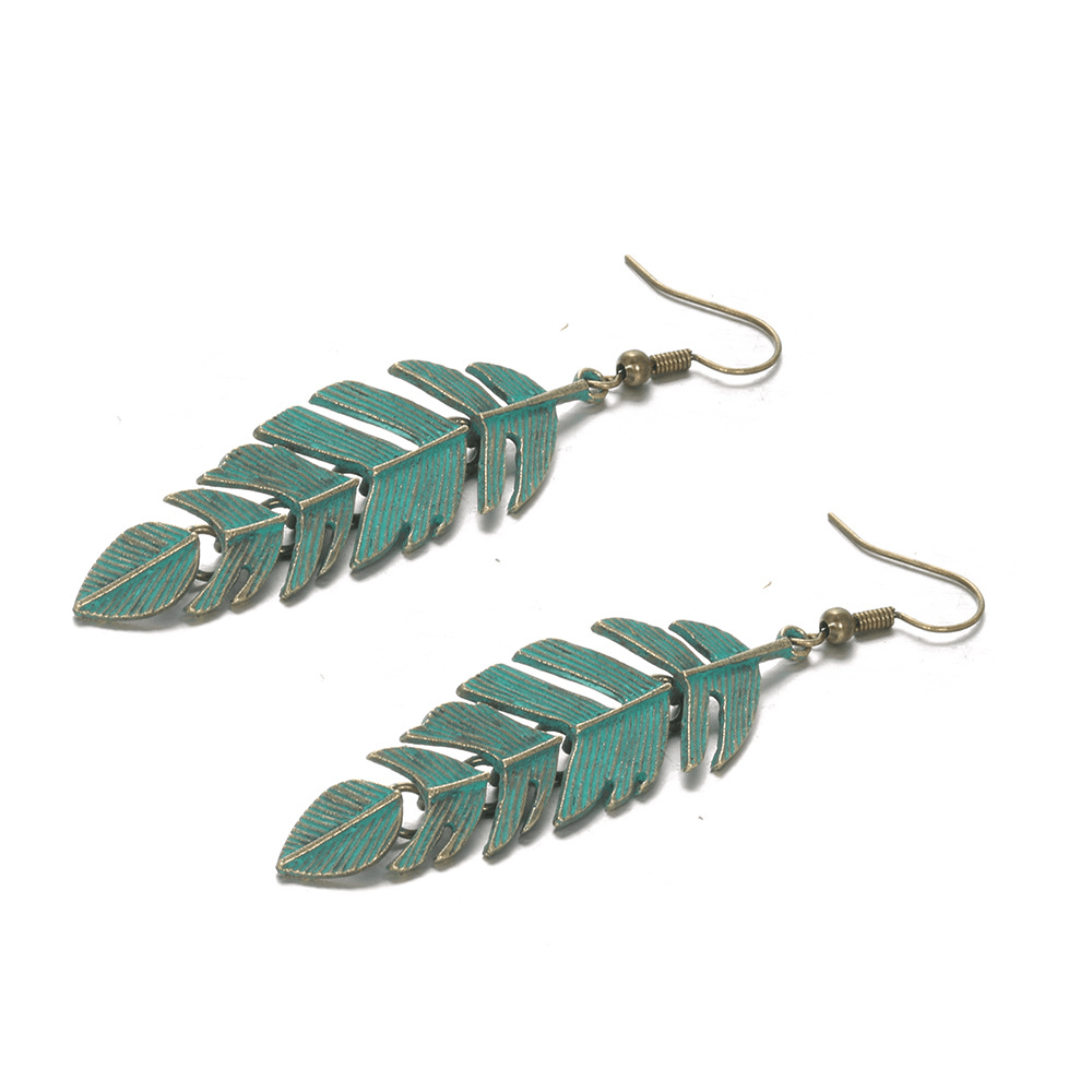 Vintage Long Fringed Leaf Feather Ear Hanging Earrings Earrings