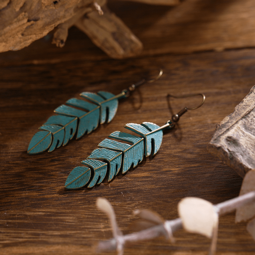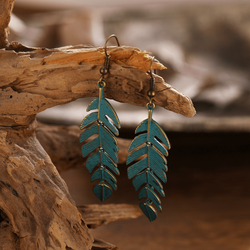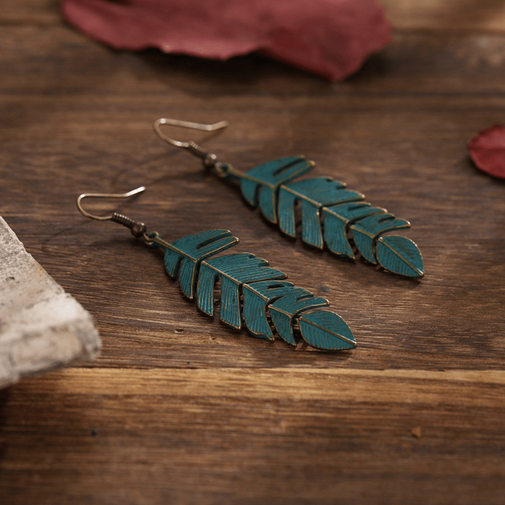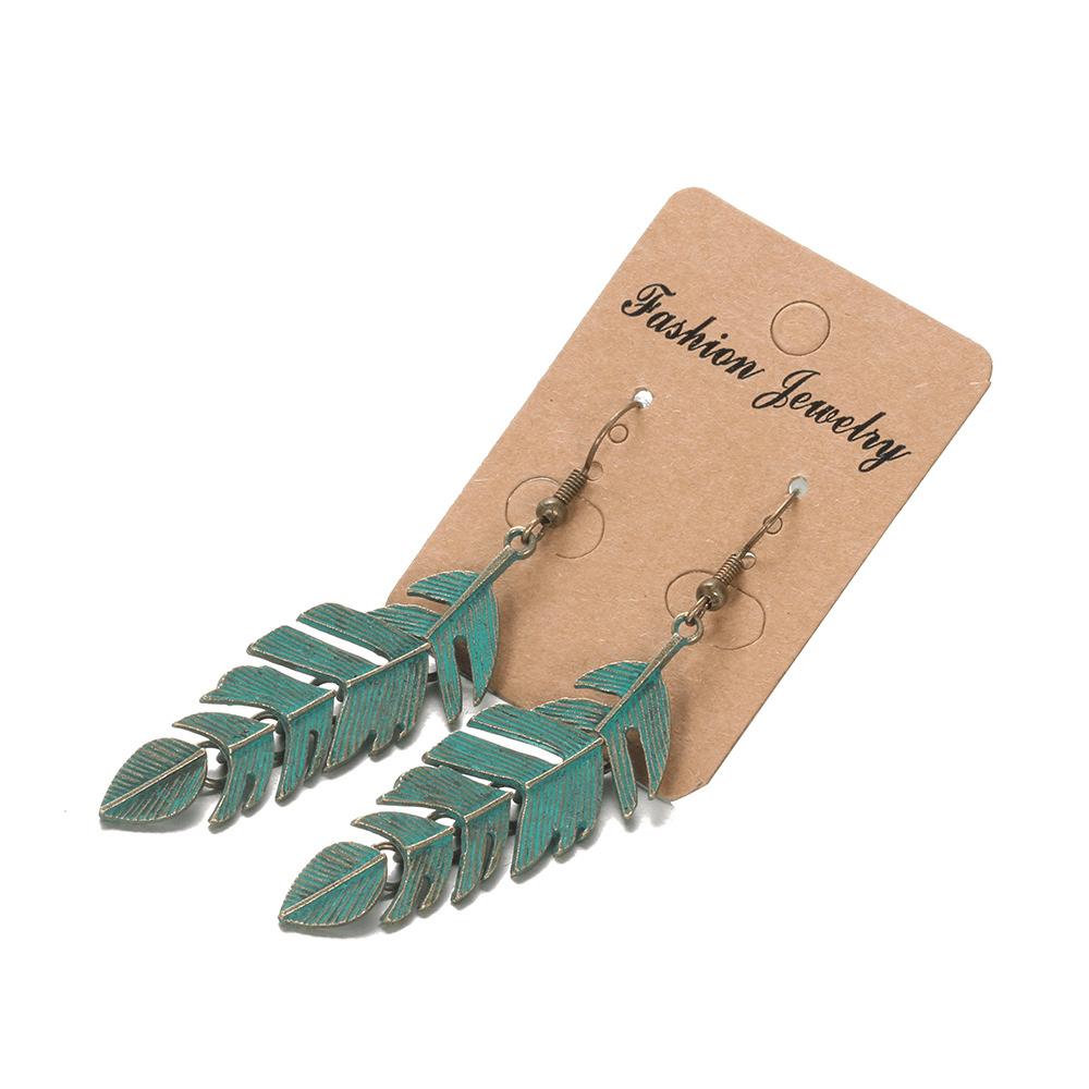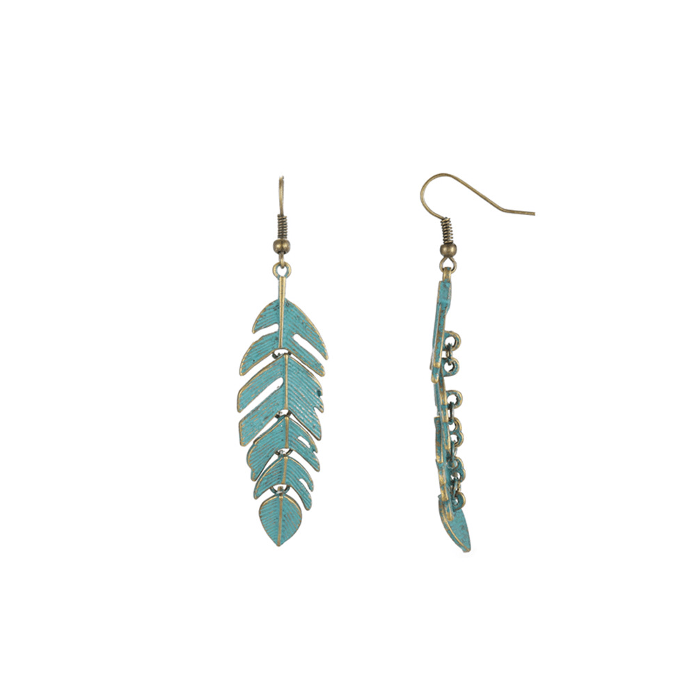 Vintage Long Fringed Leaf Feather Ear Hanging Earrings Earrings