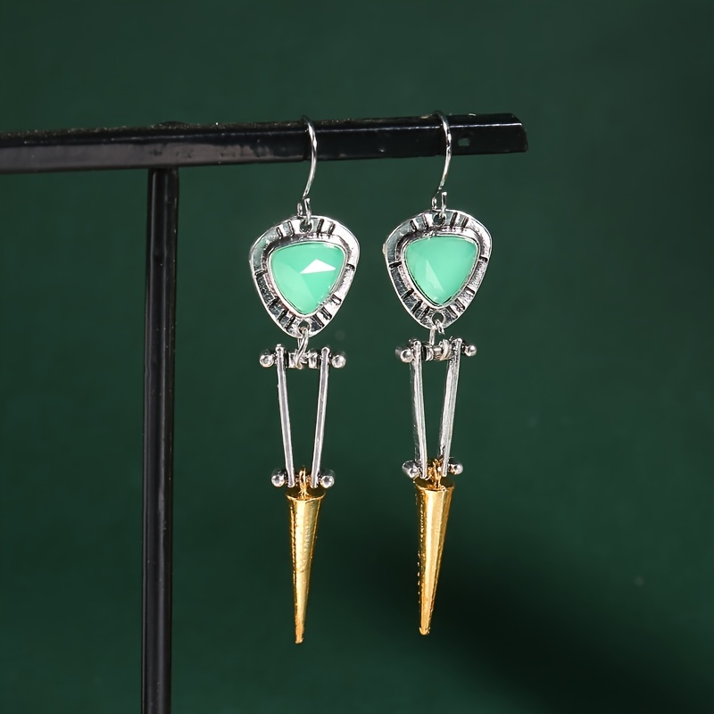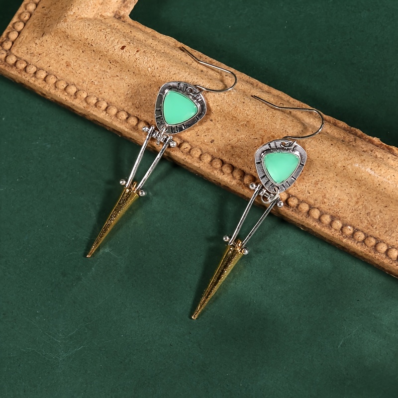 Vintage Long Turquoise Pendant Earrings 925 Silver Plated Bohemian Jewelry for Girls