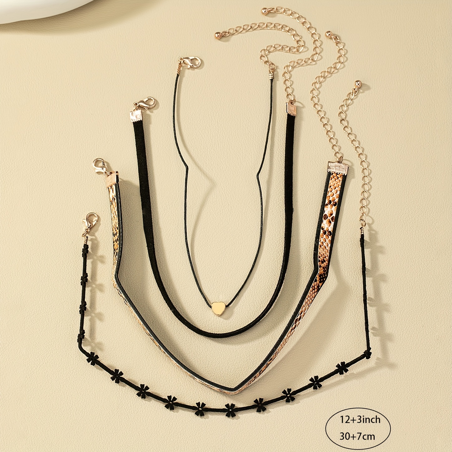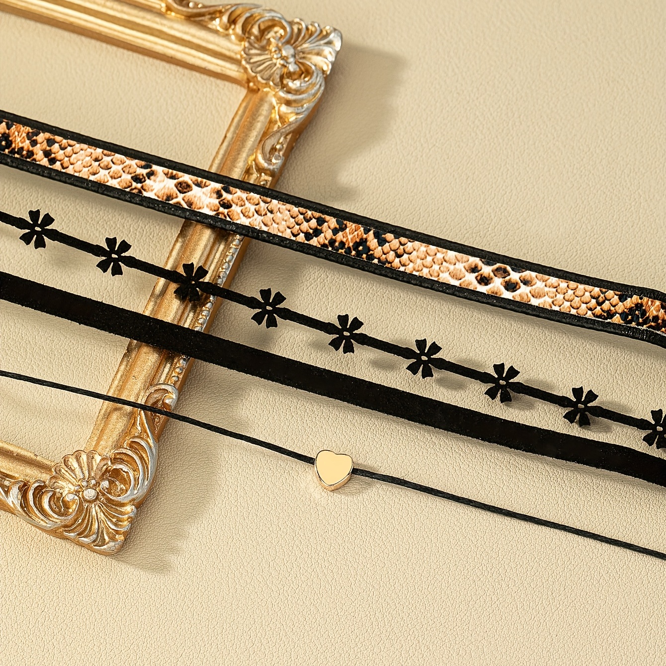 Vintage Love Leather Velvet Belt 4pcs/Set Short Necklace DIY Style