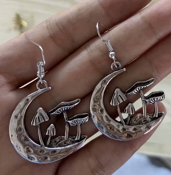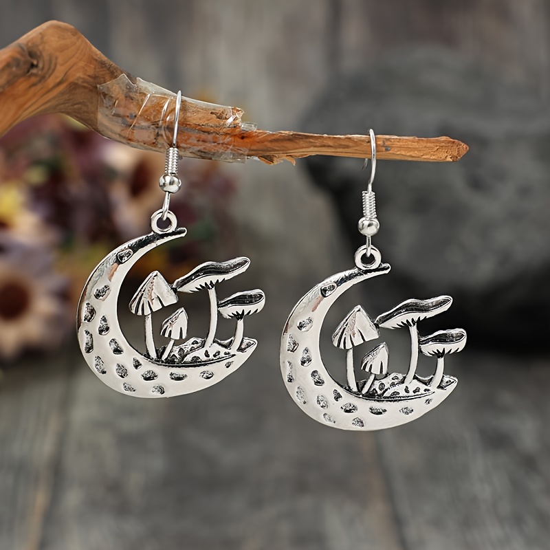 Vintage Moon Mushroom Pendant Drop Earrings Alloy Earrings Elegant Style Jewelry Fashion Women's Gifts