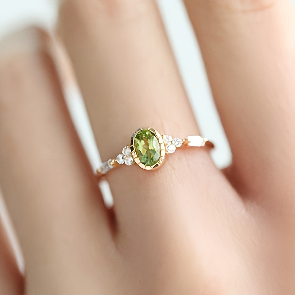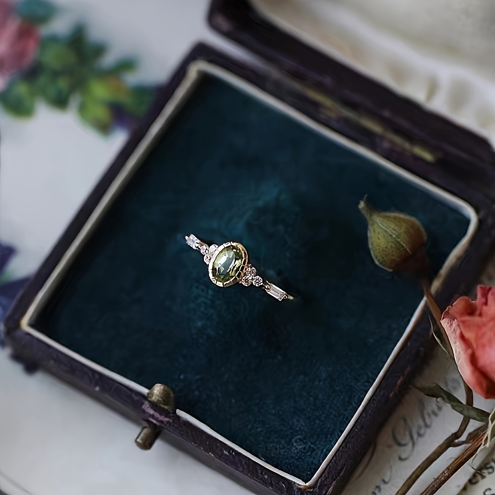 Vintage Oval Synthetic Green Zircon Anniversary Ring Women's, Copper Plated, April Birthstone, Everyday & Party Jewelry Accessories - 1 Piece